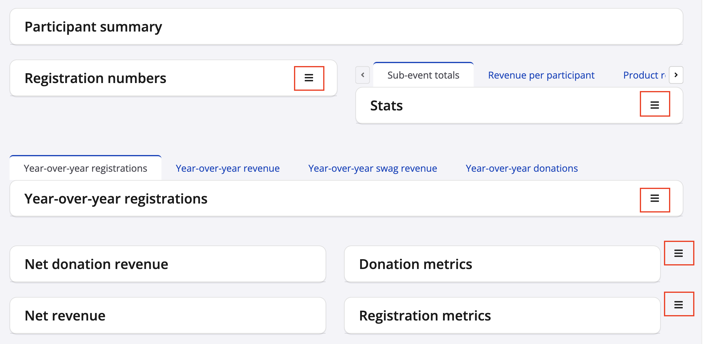 2. Navigate to the left and click the Metrics tab and click the metrics page you would like to customize: Event metrics, Sub-event metrics, or Demographics
