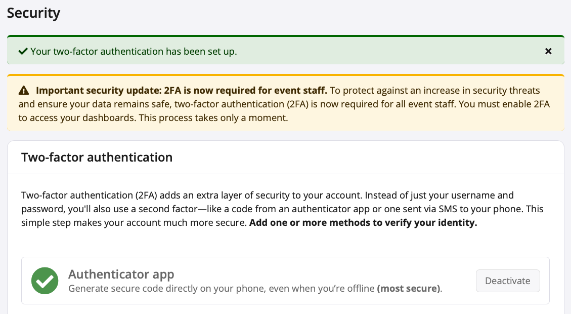 Enabling Two-Factor Authentication (2FA) - Participants and Fundraisers