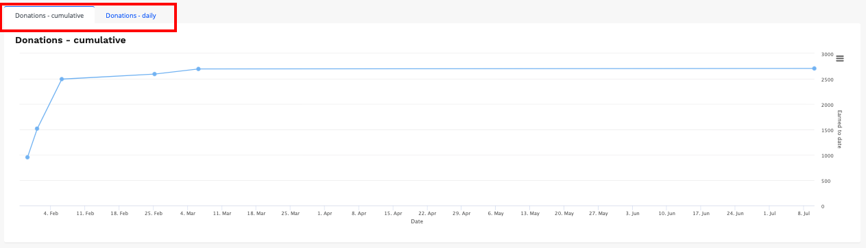 9. You can select between a cumulative or daily donations graph