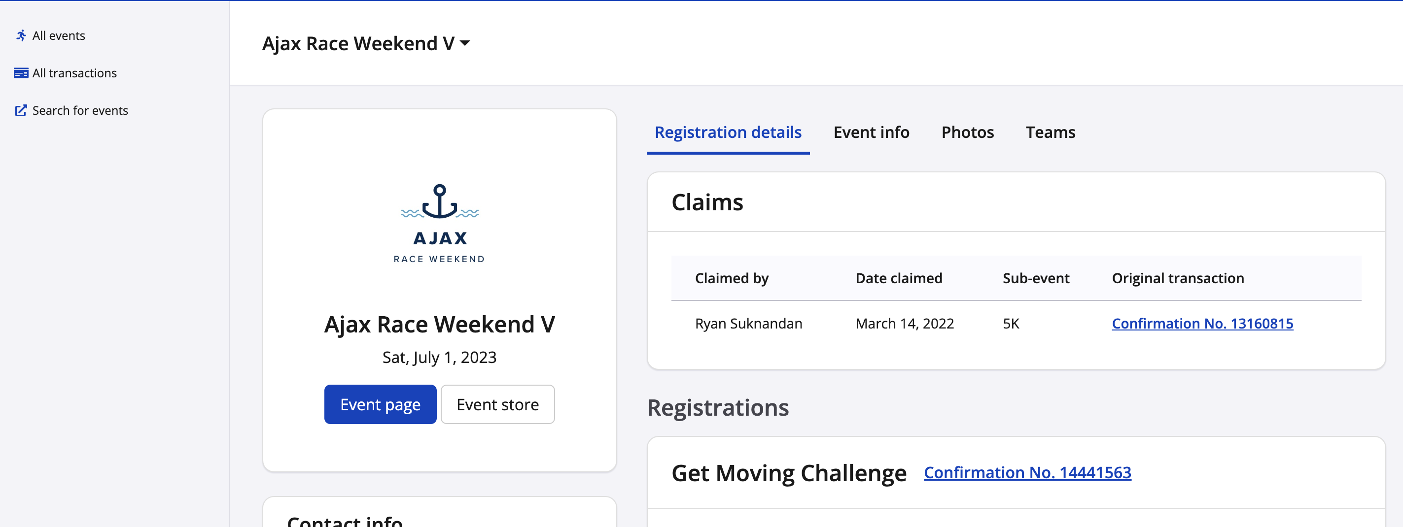 2. You will land on your Welcome Page where you can see all the events that you have registered for on Race Roster.