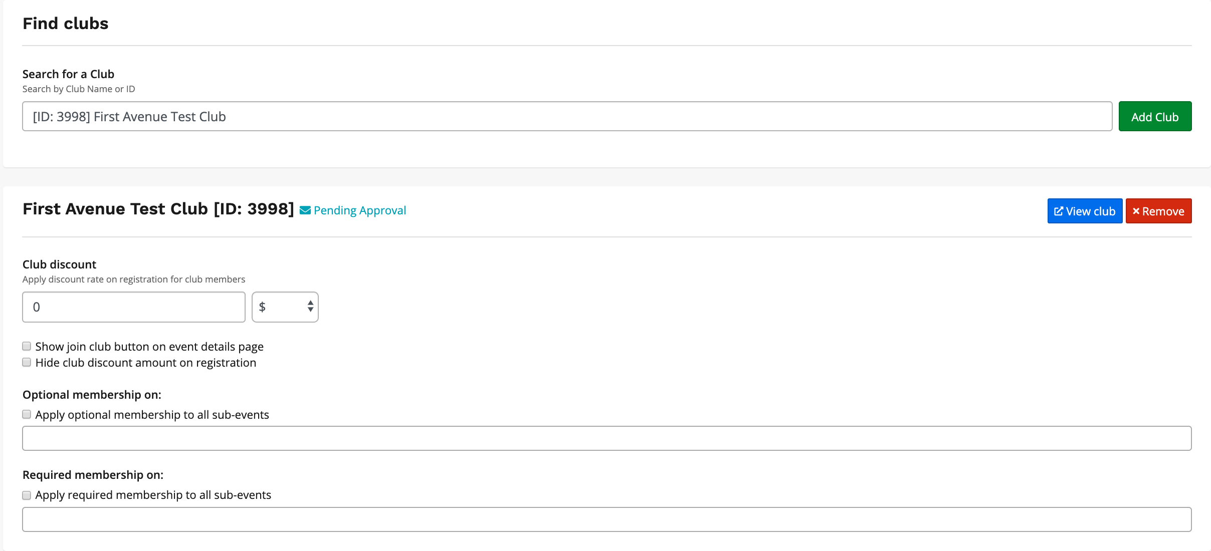 - On the club association page, you will be able to enter $ amount or % amount to discount (if applicable)