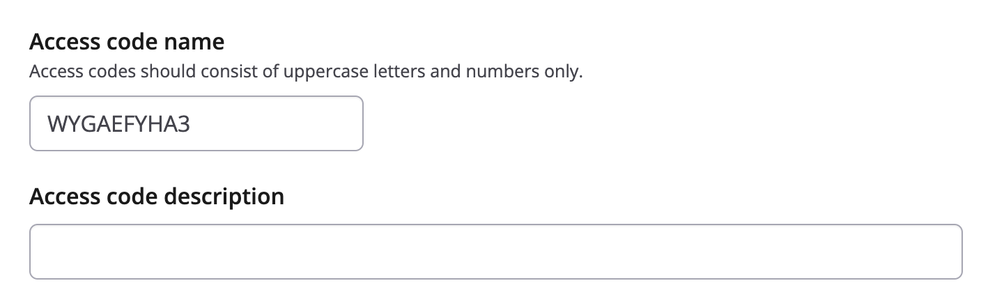 Users can also add a code description if they choose to take note of why they created the access code.