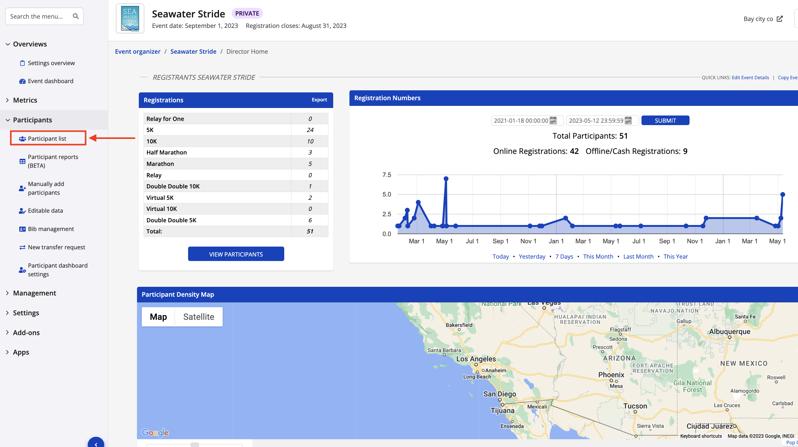 1. From you event dashboard, to the left of your screen, click Participants -> Participant list
