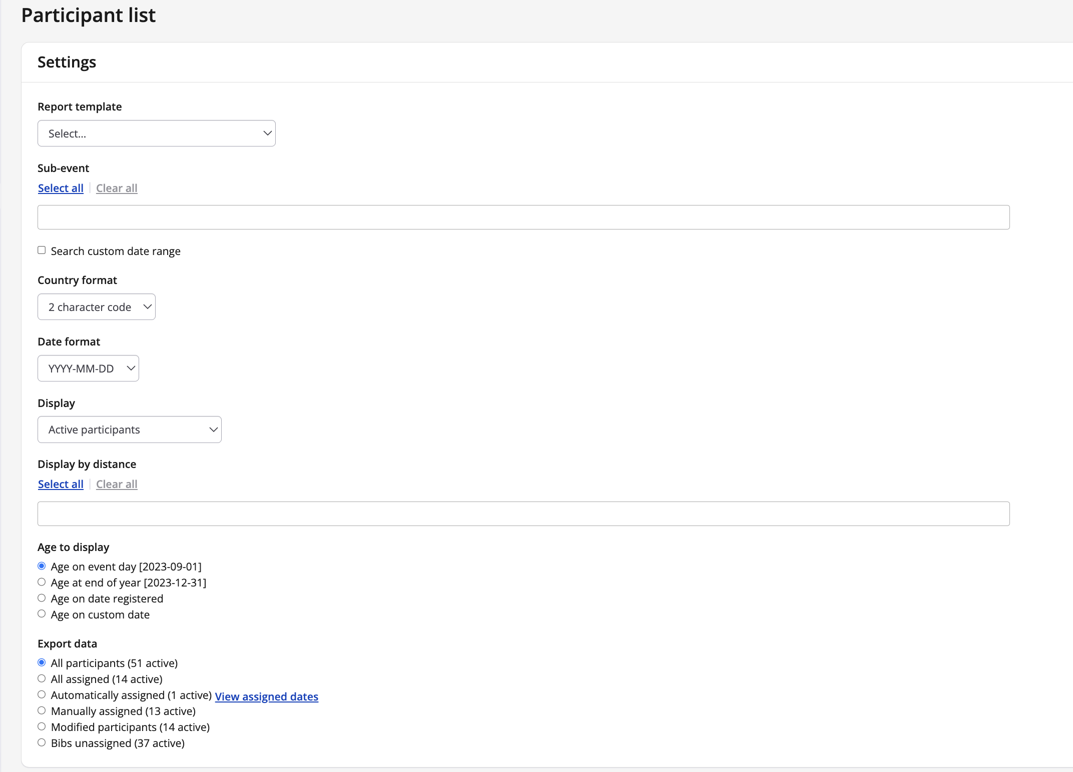 - Age to display (age on event day, age at the end of the year, age on date registered, etc.)