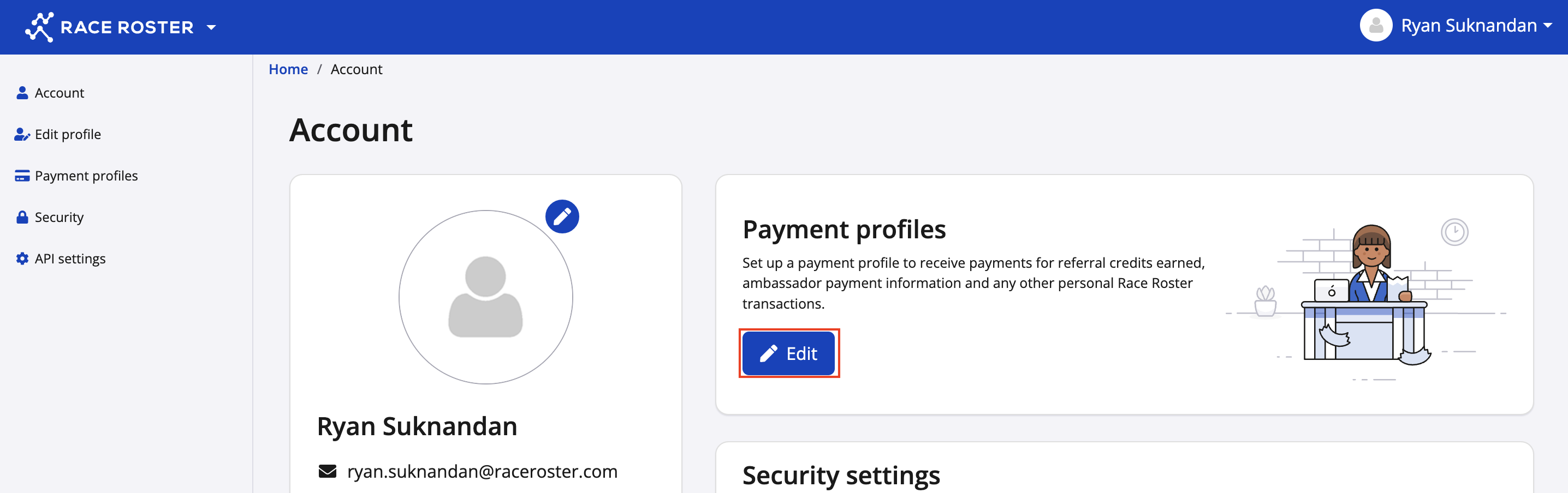 2. Scroll down and click on Edit in the Payment Profile section under User Settings