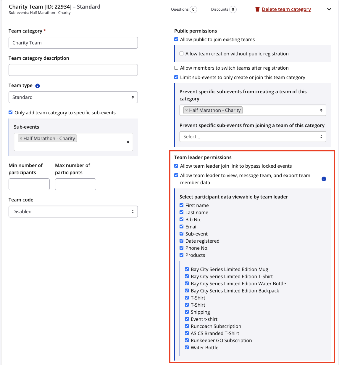 - Under each team type that you have set up, select 'Allow Team Leader to view and export team member data?', and specifying which fields should be viewable and exportable by the team captain