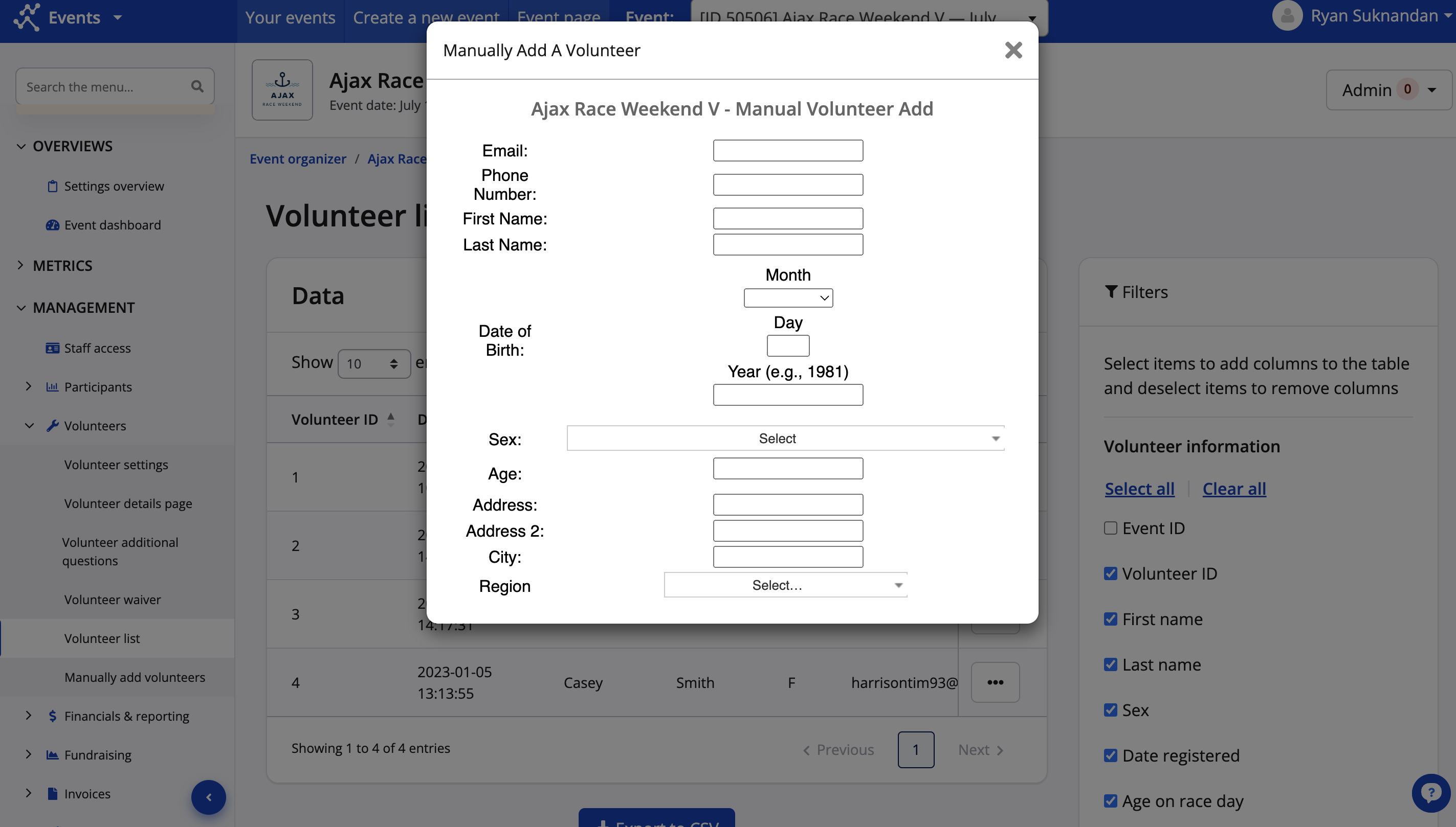 - To complete the manual addition click on 'ADD VOLUNTEER', which will add them to your database