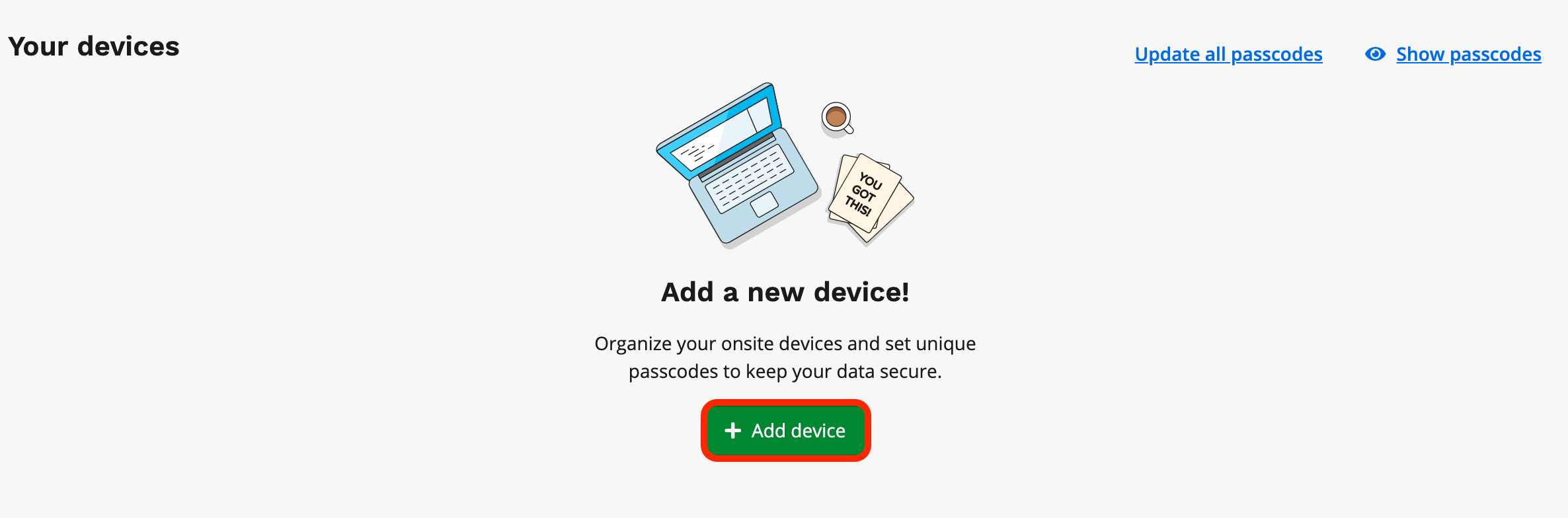 To set up your first device click + Add Device