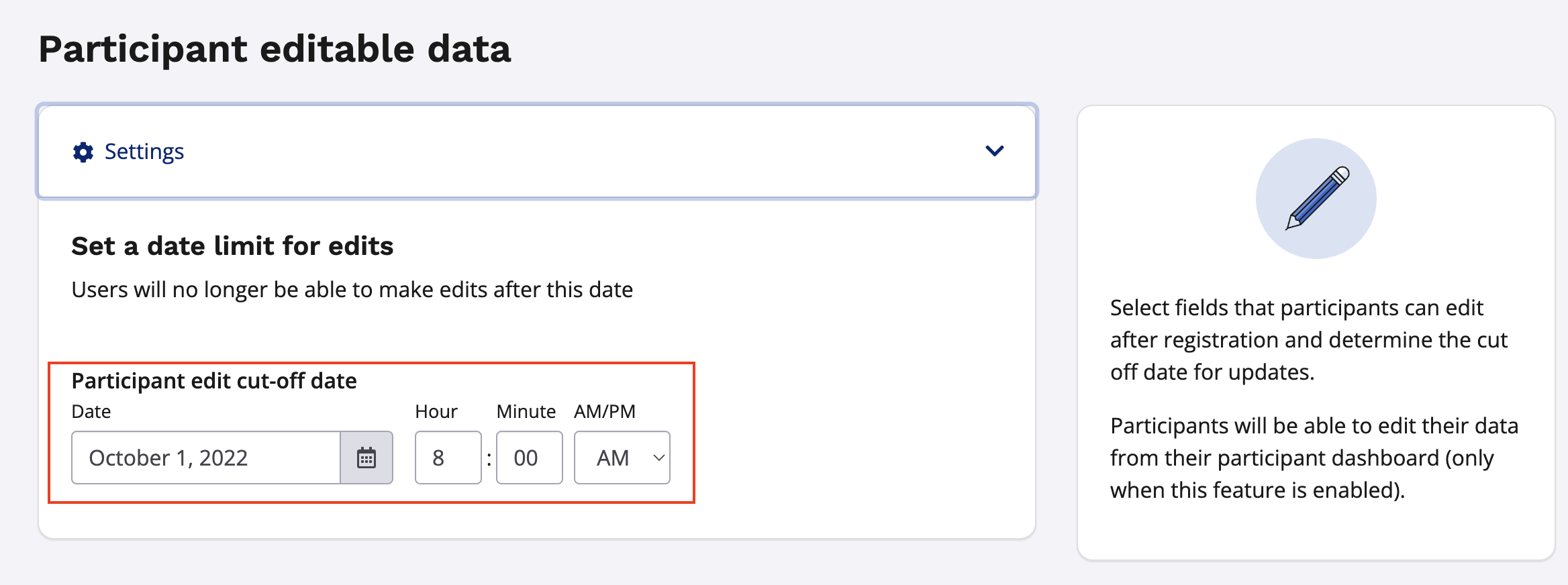 How do I set/edit the information my participants are able to edit?