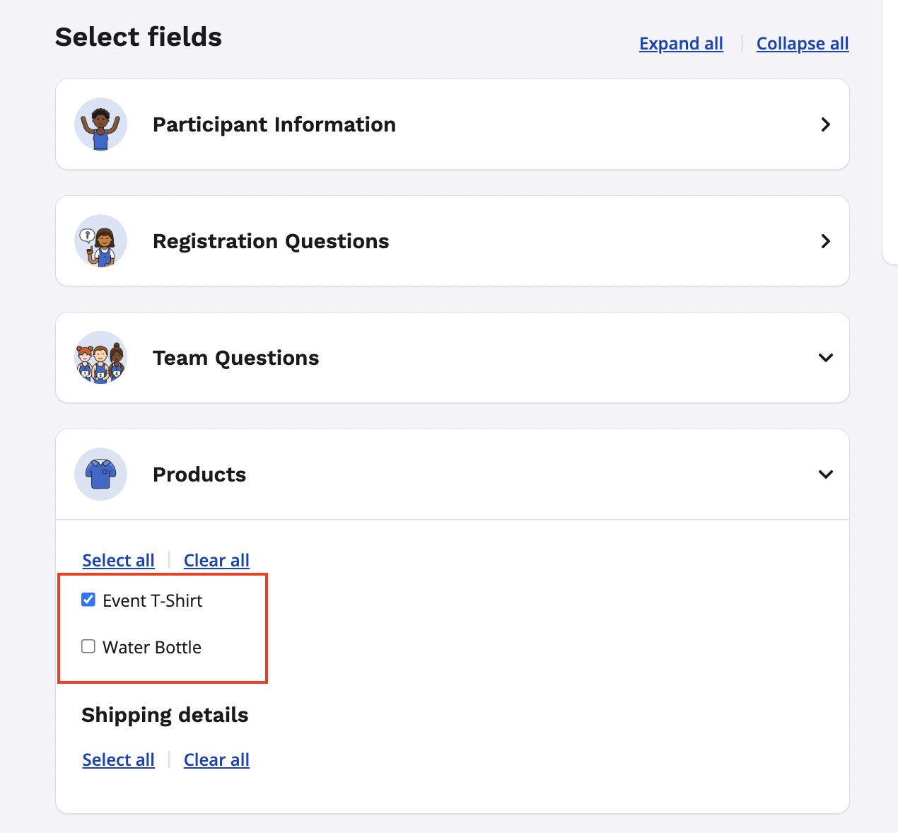 5. Check off any fields that you would like to allow a participant to edit via their participant dashboard by expanding any of the available data categories.