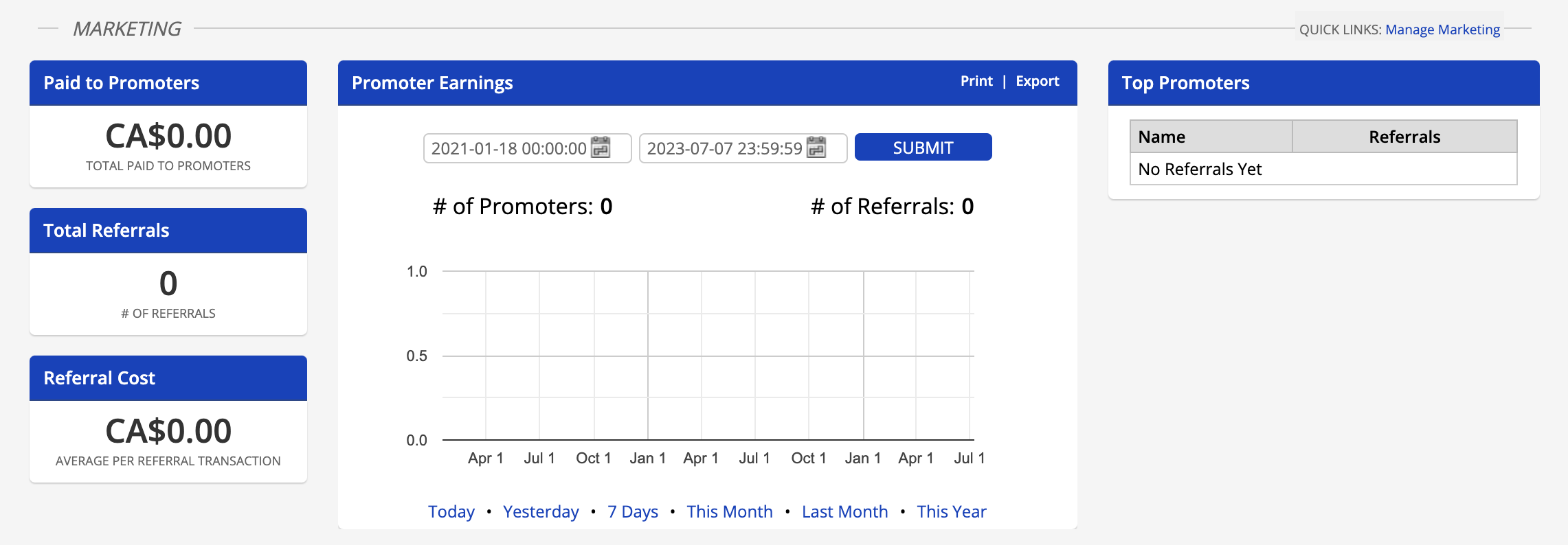 Event organizers will be able to keep track of your promoters' efforts from the marketing section of your event dashboard, or, by tracking referrals from your event's transaction report and filtering for referral transactions.