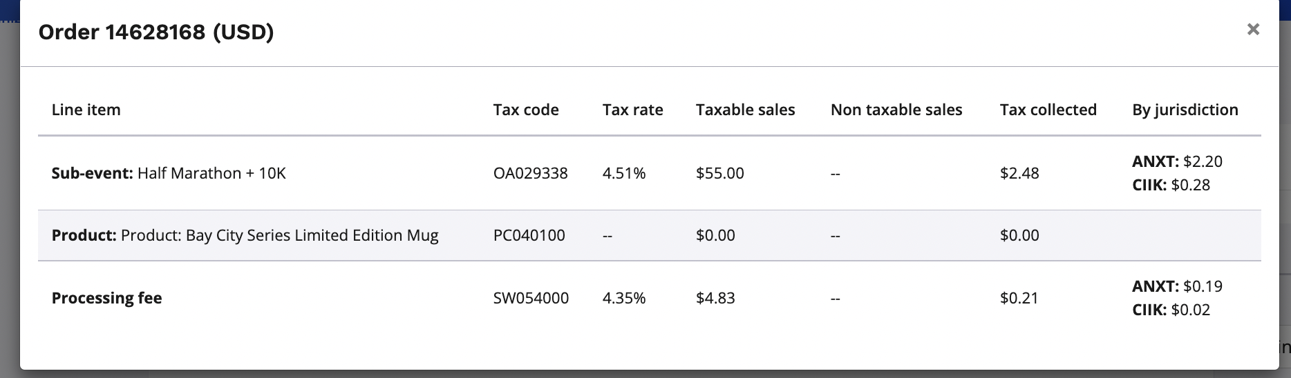 - Non-marketplace states will not display the jurisdiction column in the tax report