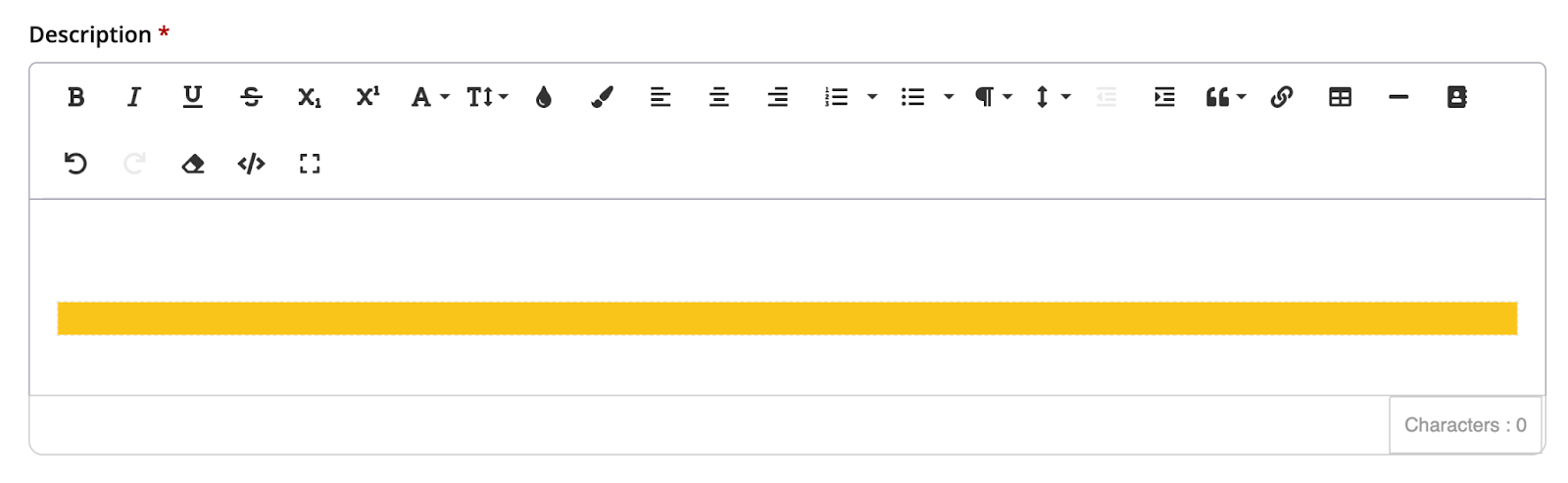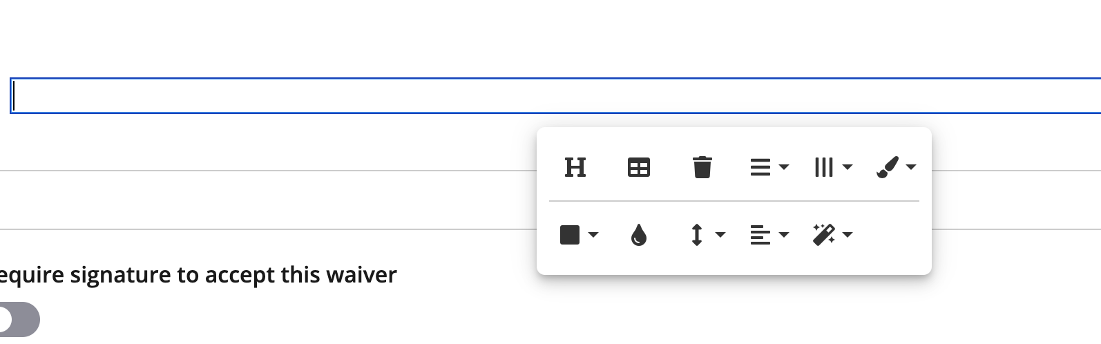 3. From your waiver's WSYIWIG (powered by Froala), add a 1x1 table.