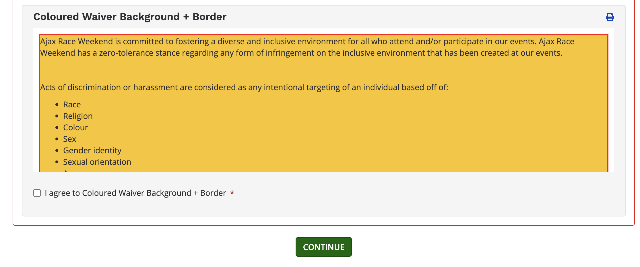 4. Click save once complete. Your waiver will now display both the colored background, as well as the red border.
