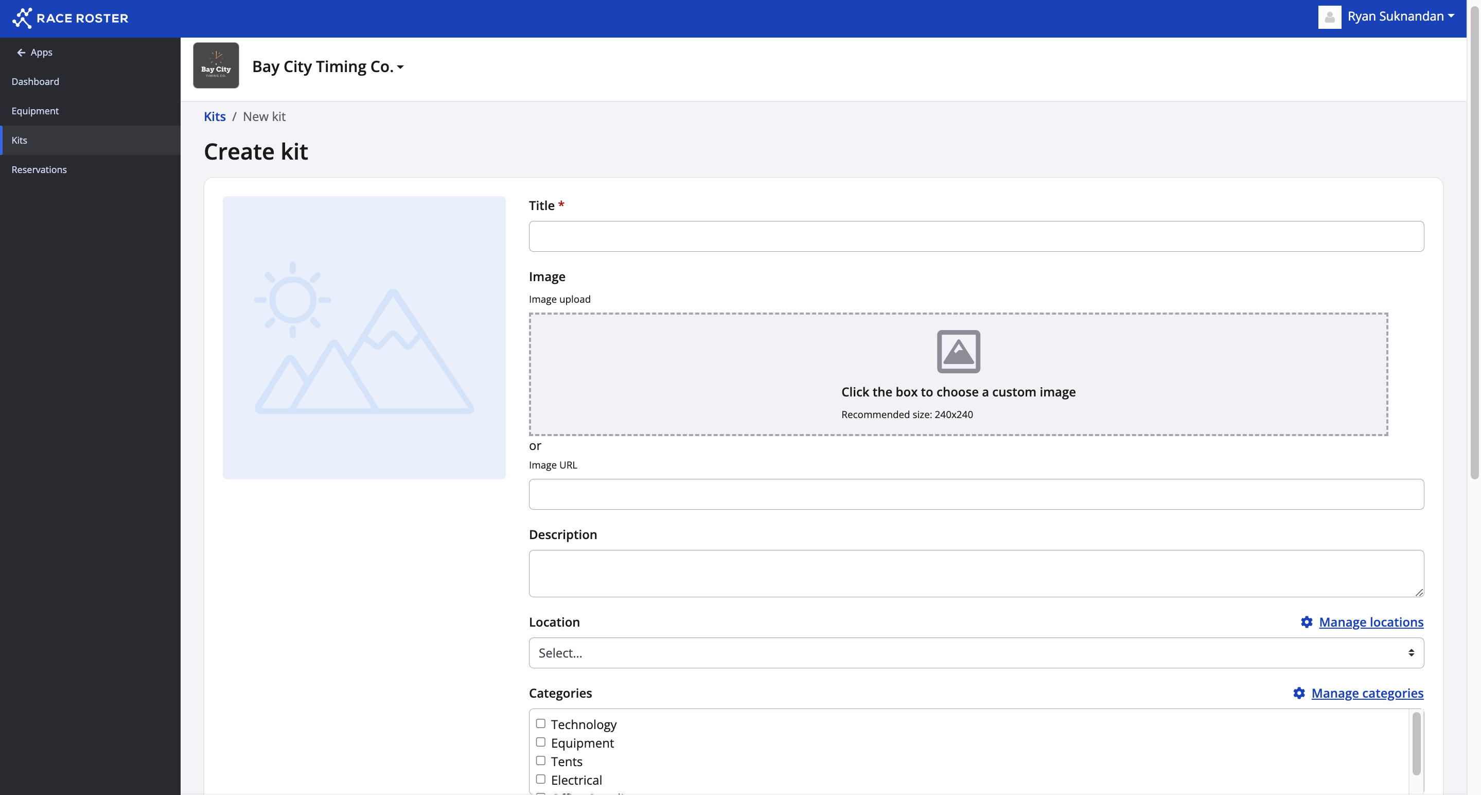 5. Here you can enter the title of the kit, add an image via URL, description, location, and categories.