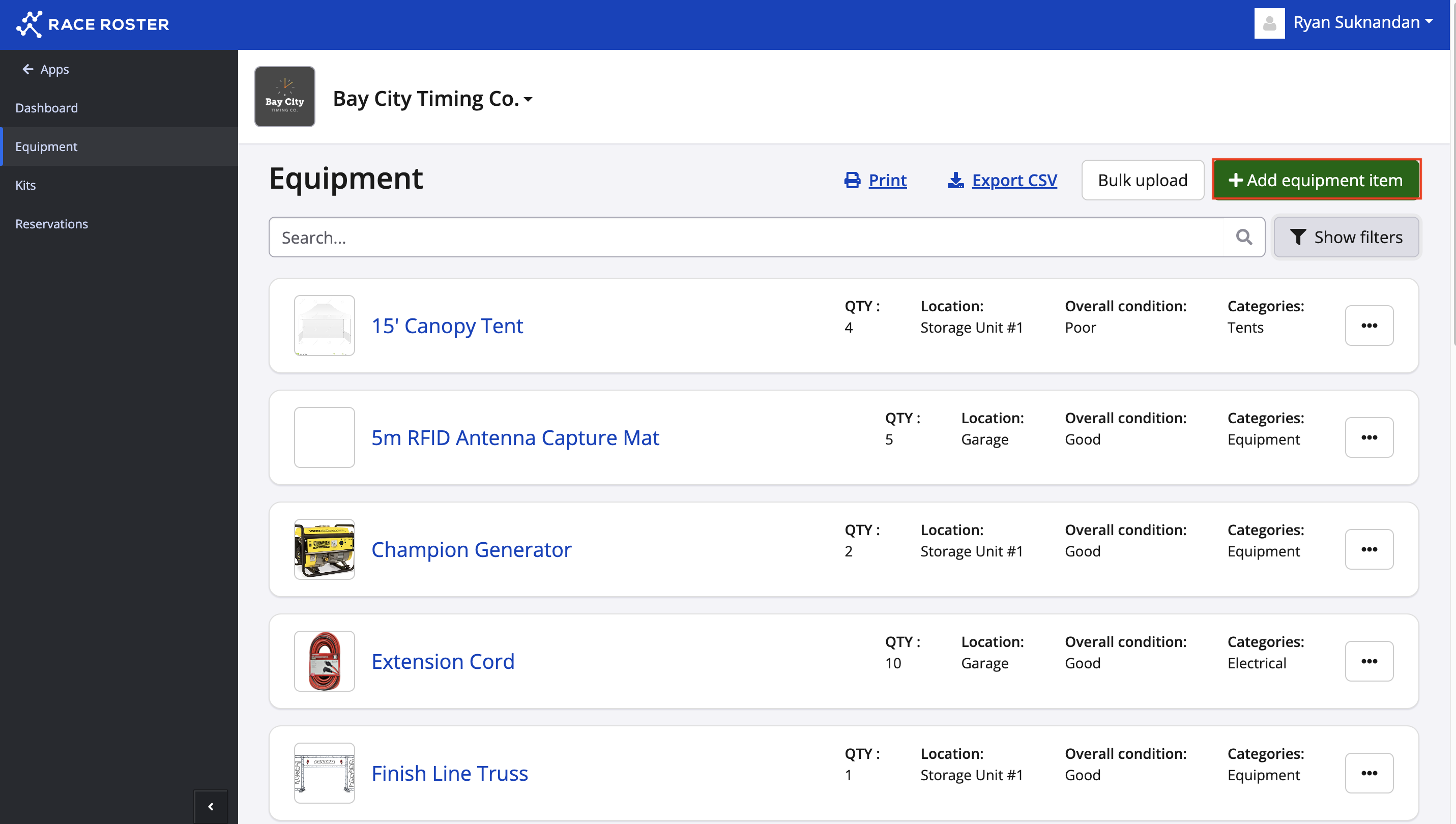 3. Click the green + Add equipment item button in the top right-hand corner.