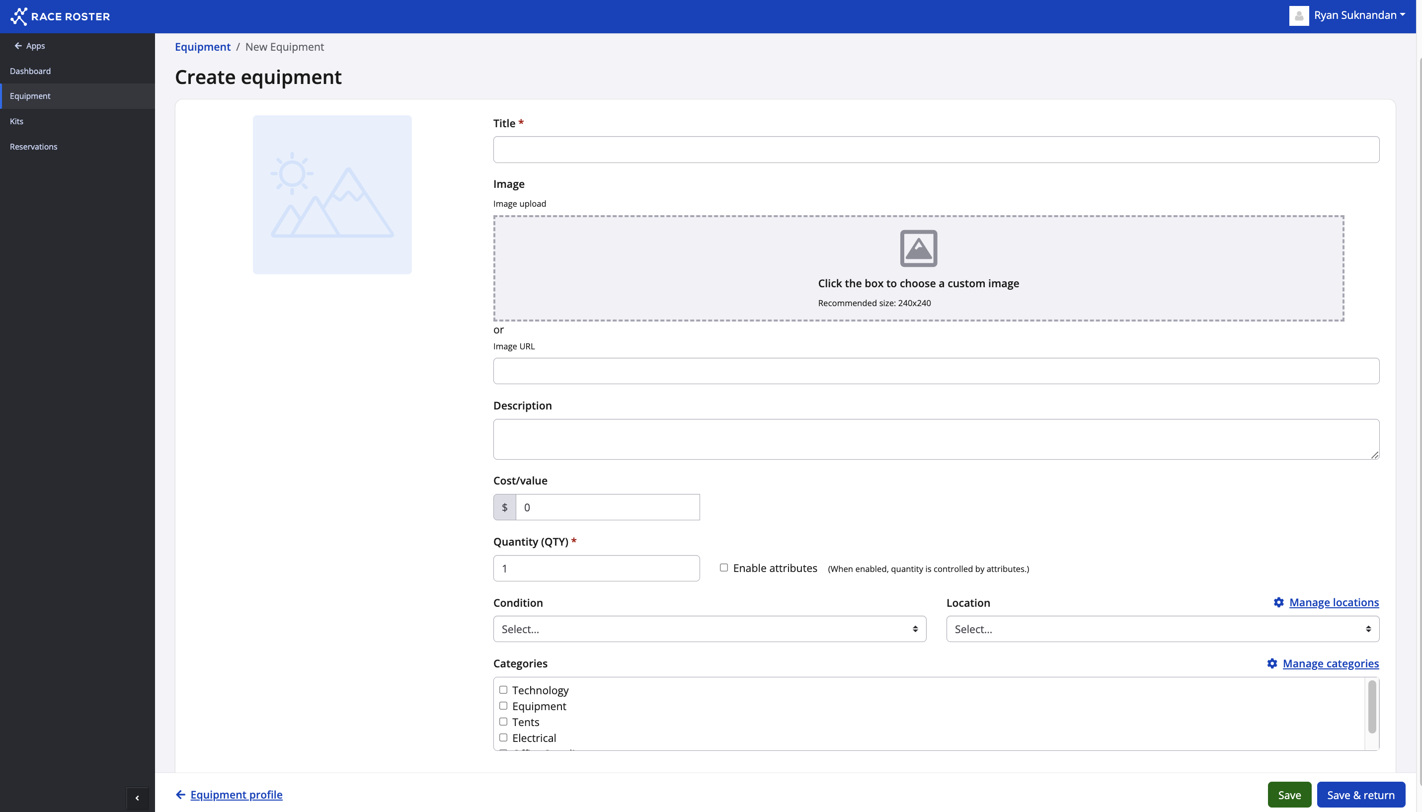 How to add Equipment to your Inventory