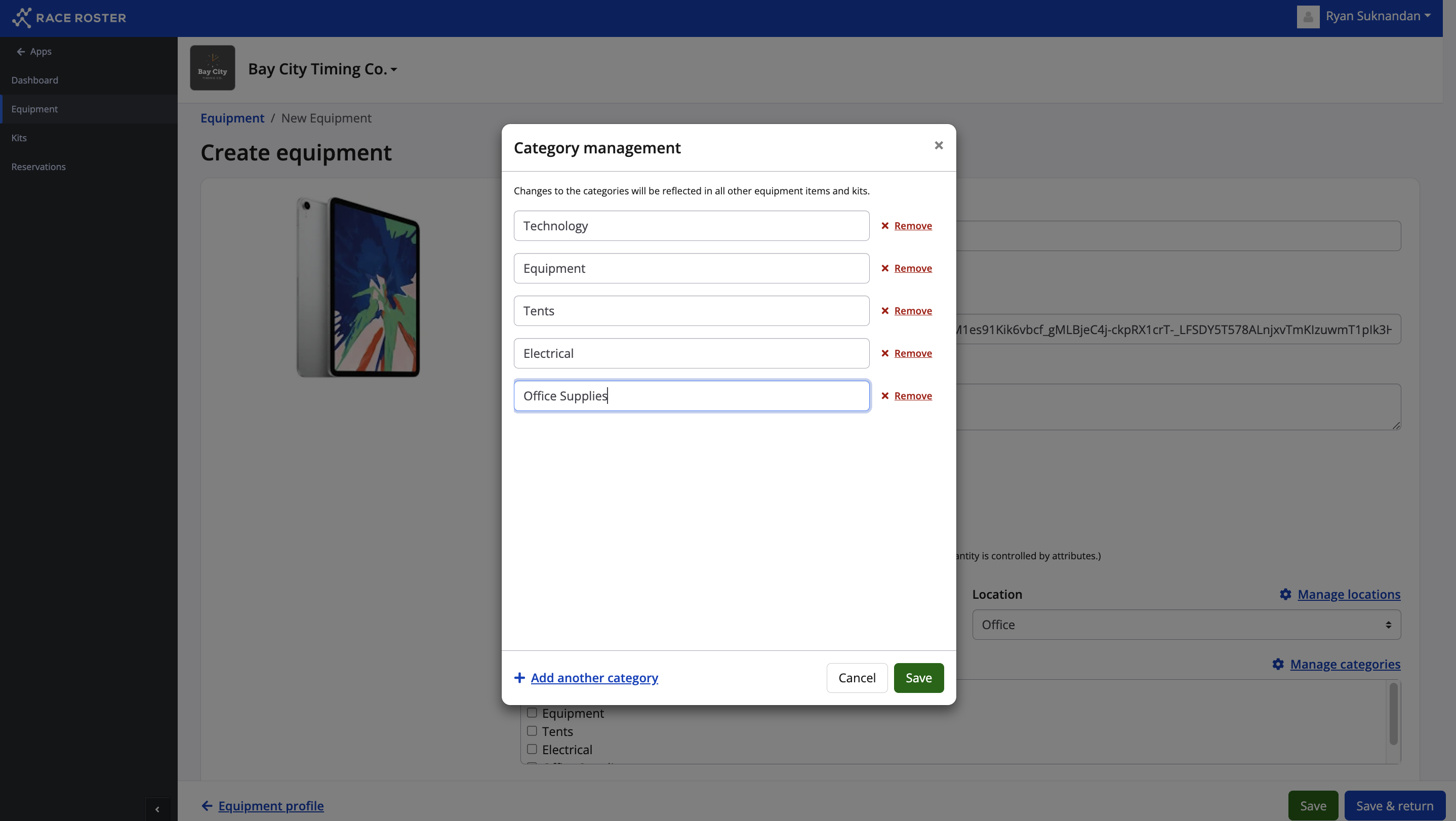 7. Each will take you to their respective modal where you can create locations and categories by clicking + Add another location and + Add another category.