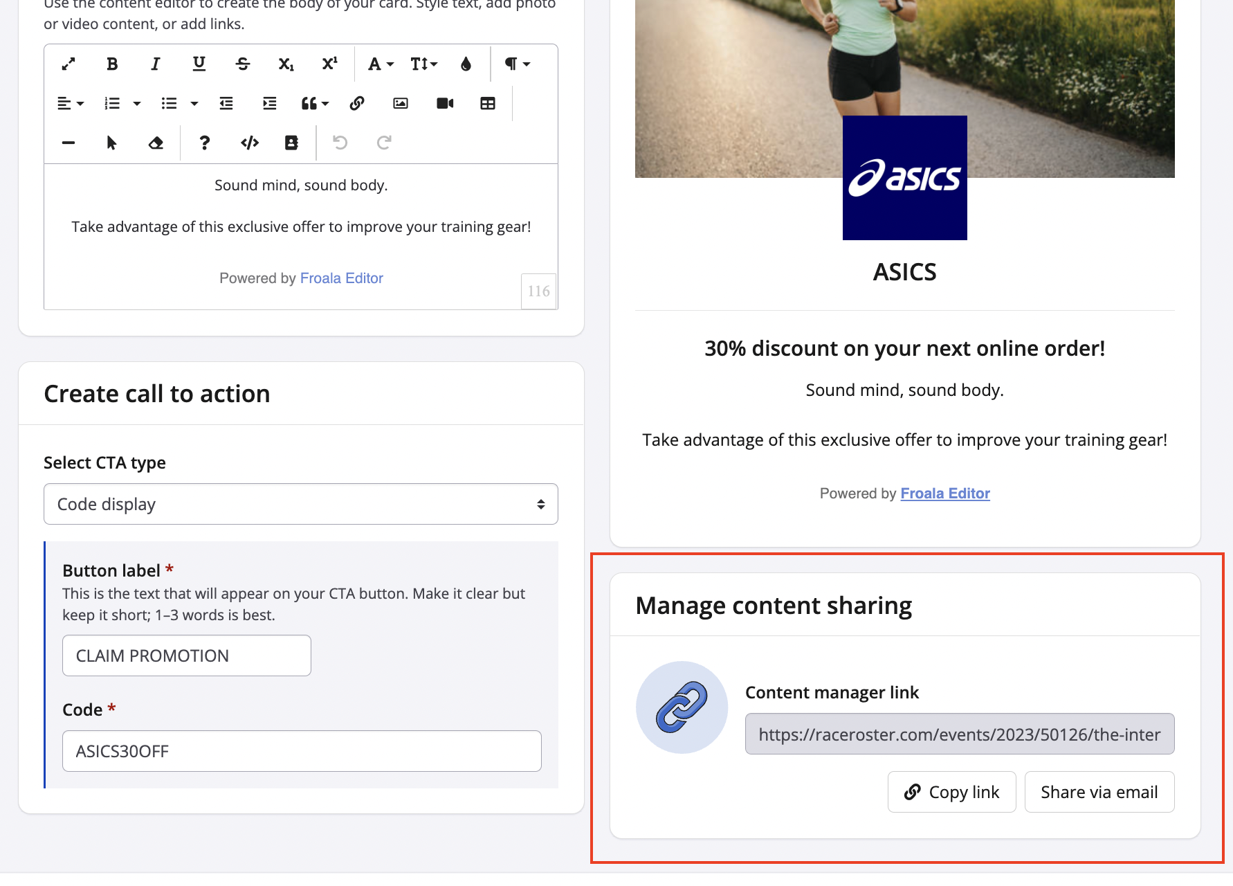 Digital engagement kits are a unique feature on Race Roster that allow for a variety of use-cases such as contest offerings, training plans leading up to the race, participant engagement, sponsorship offerings/discount codes, and many more (learn how to create digital engagement kits HERE). We have now added the ability for members of the public, sponsors, or anyone who is not event staff to submit cards to your existing digital engagement kits.