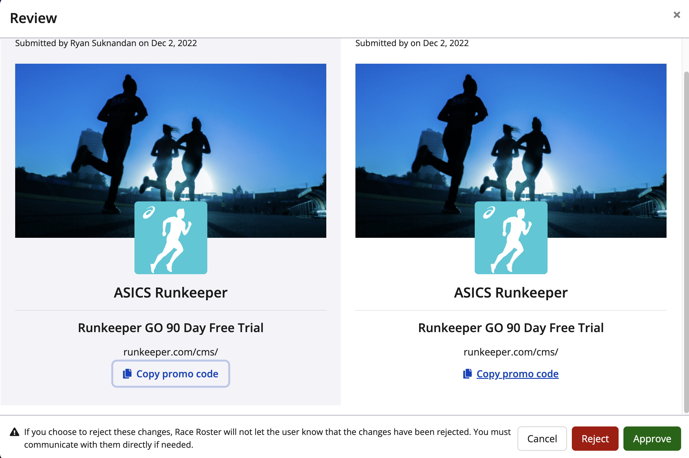 Once submitted, the event organizer will be able to approve the submission from within their card settings within the kit being used.