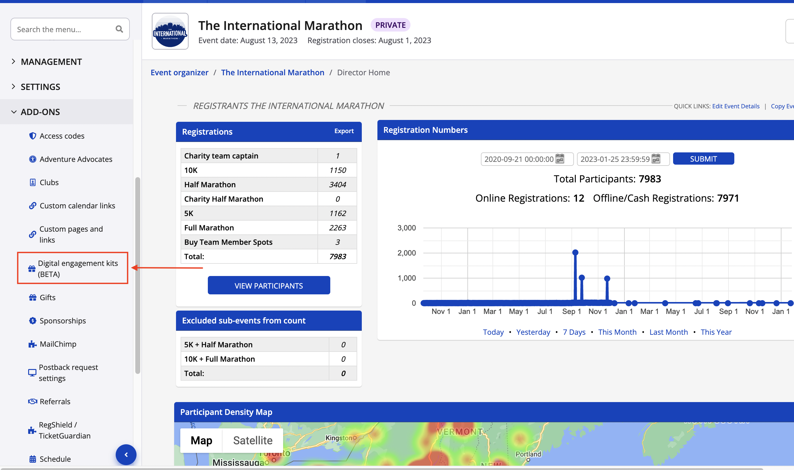 From your event dashboard, click on digital engagement kits under the add-ons tab from your lefthand side menu