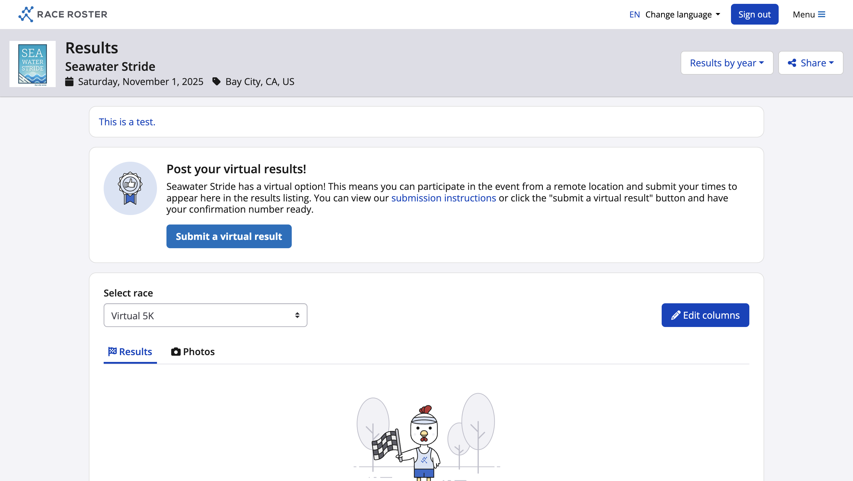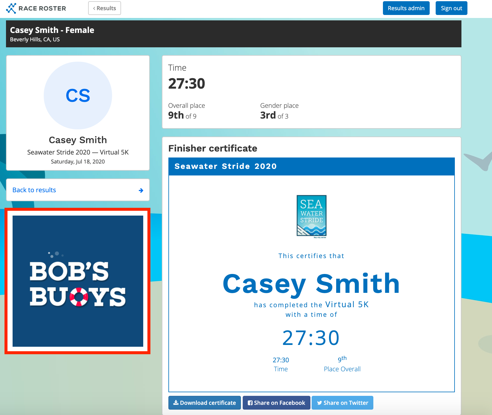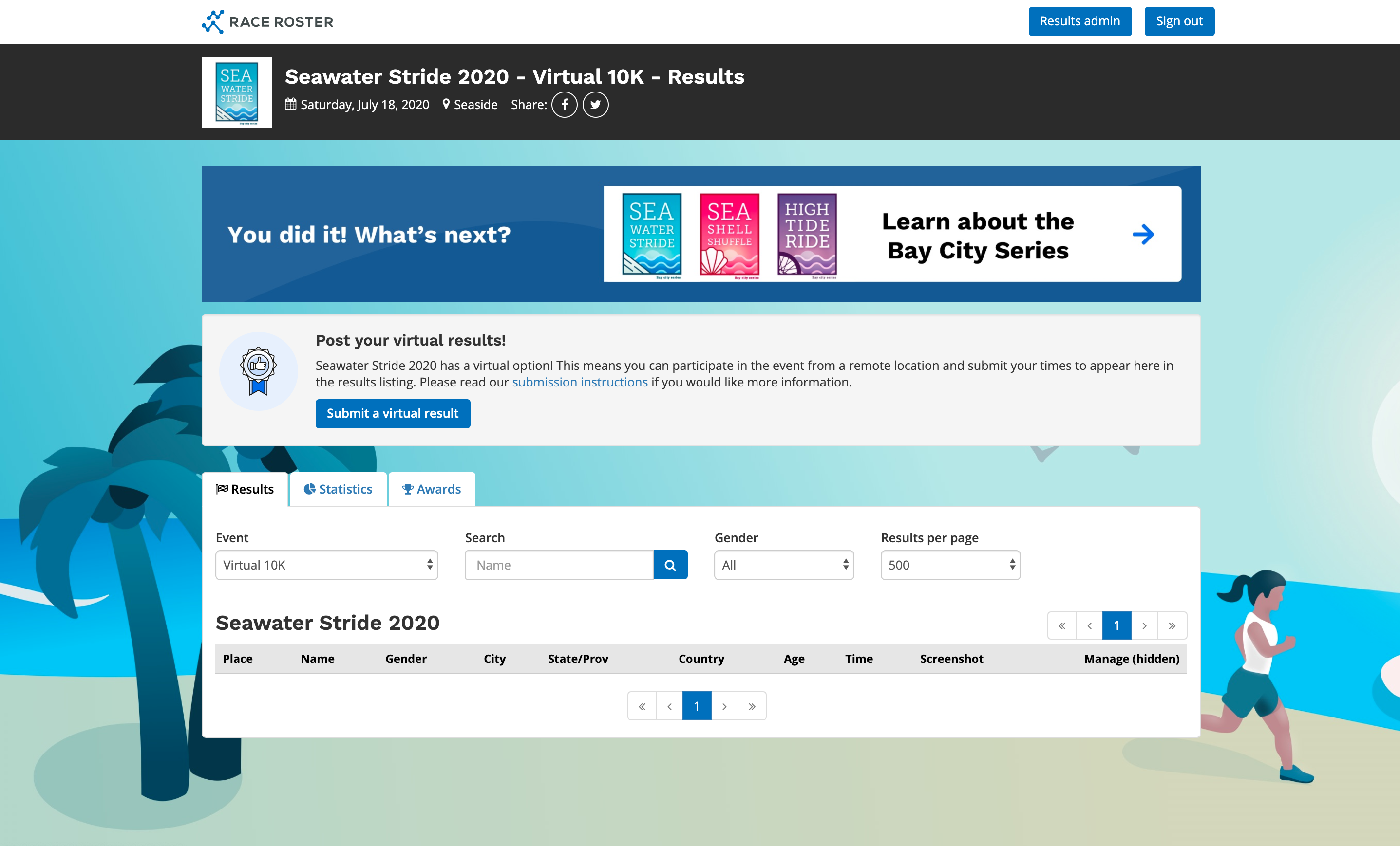 Results page with Race Roster's default theme