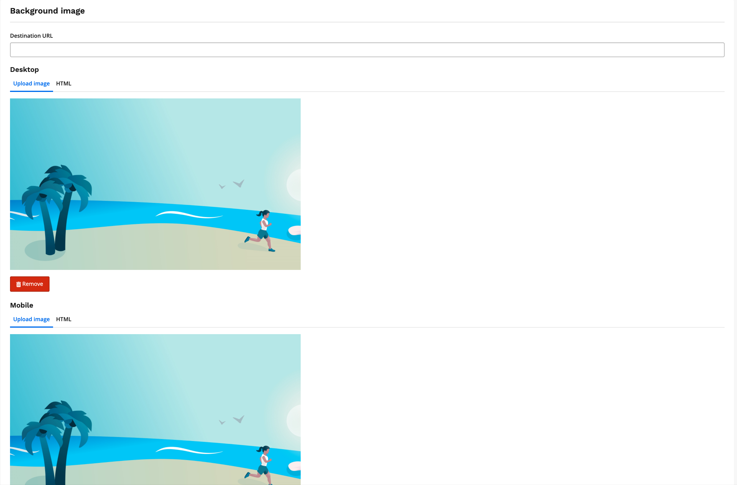You may also add images that will appear on the mobile version of the results page. Moreover, you can add destination URL. A Destination URL is simply the address of your webpage people reach when they click one of your image.