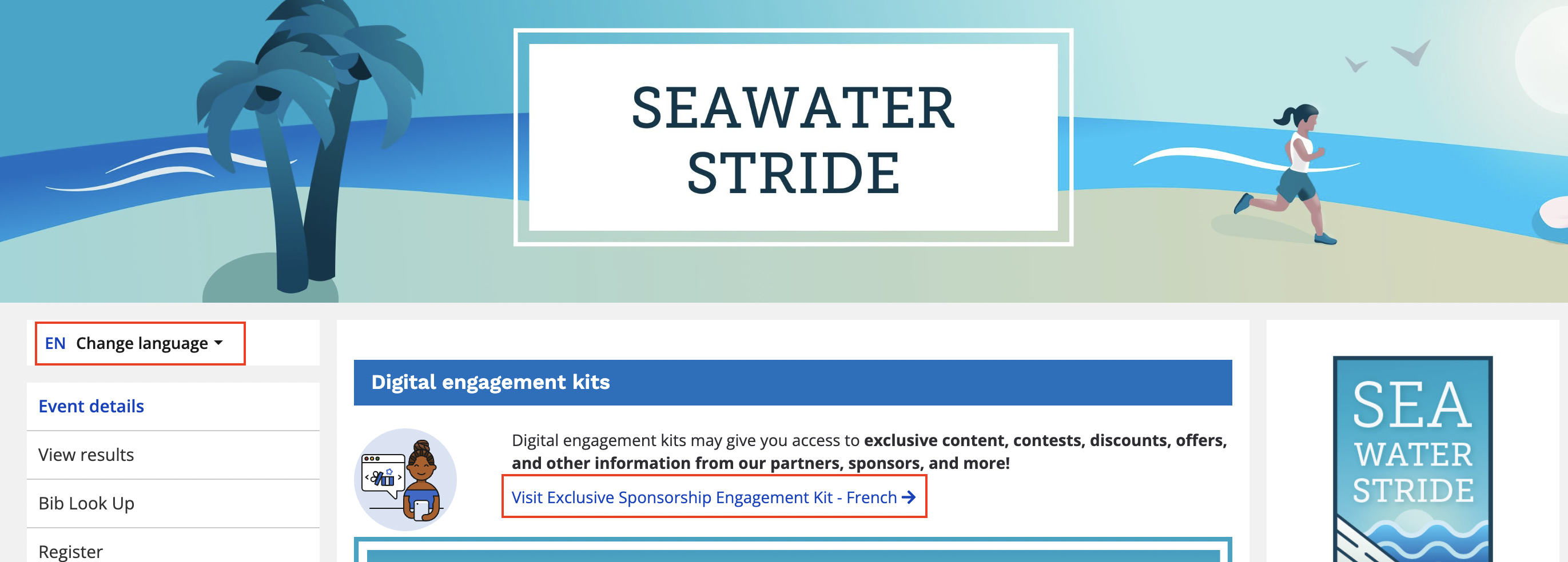 Digital engagement kits can also be created and viewed in different languages if your event has multiple languages enabled on it. Please refer to our article how do I set up my page to be bilingual to have our support staff enable these settings for you.