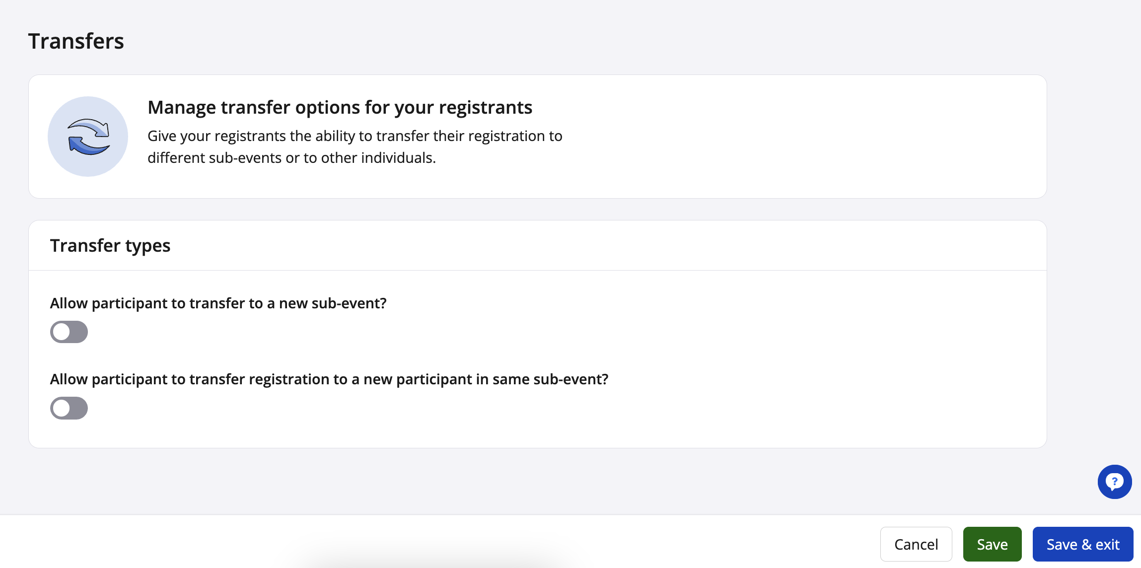 NOTE: You can only manage the configurations of one transfer type at a time. After configuring one type, click "Save & exit" and then, if needed, re-enter Settings > Transfers to manage the settings of the second transfer type.