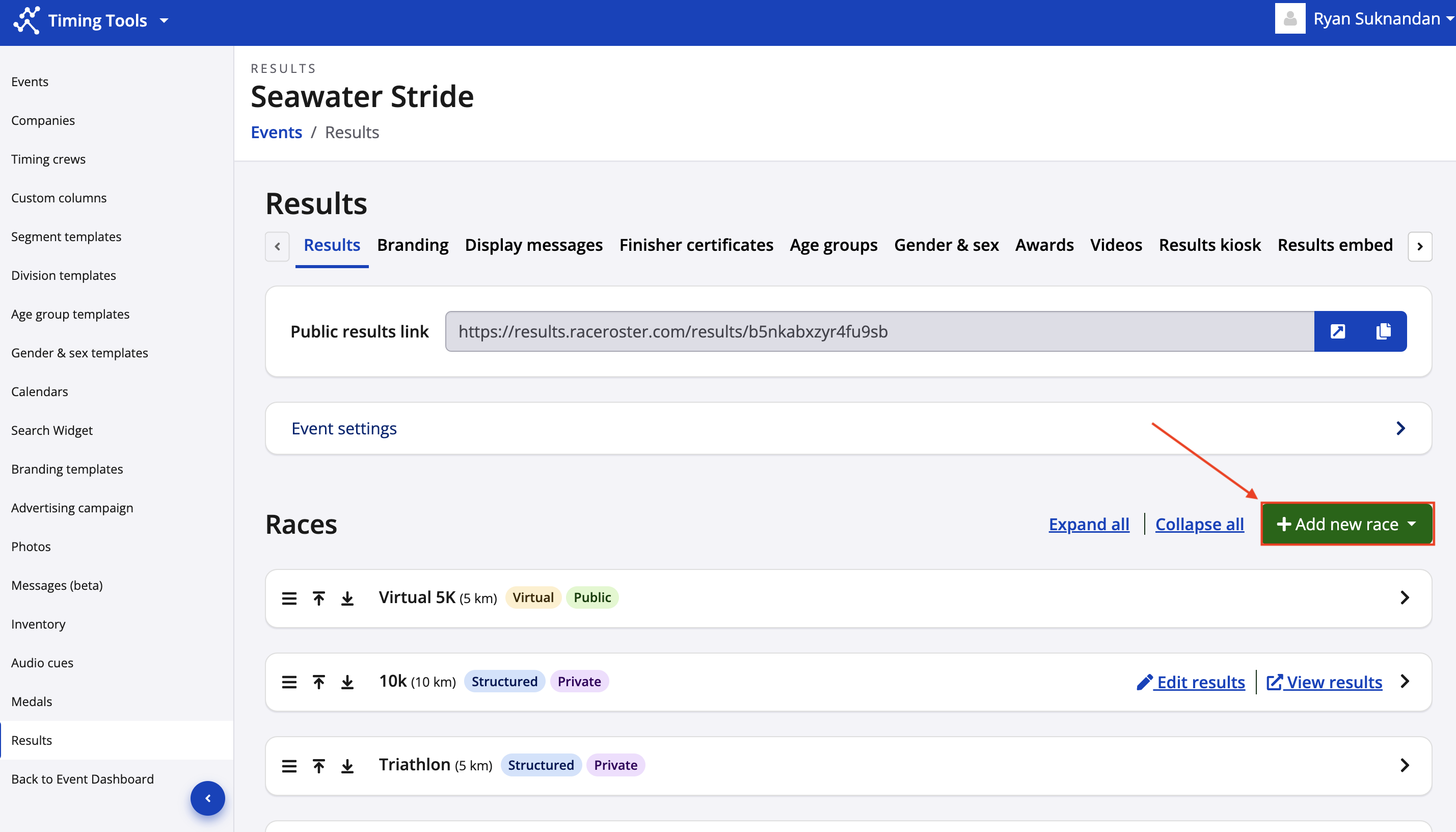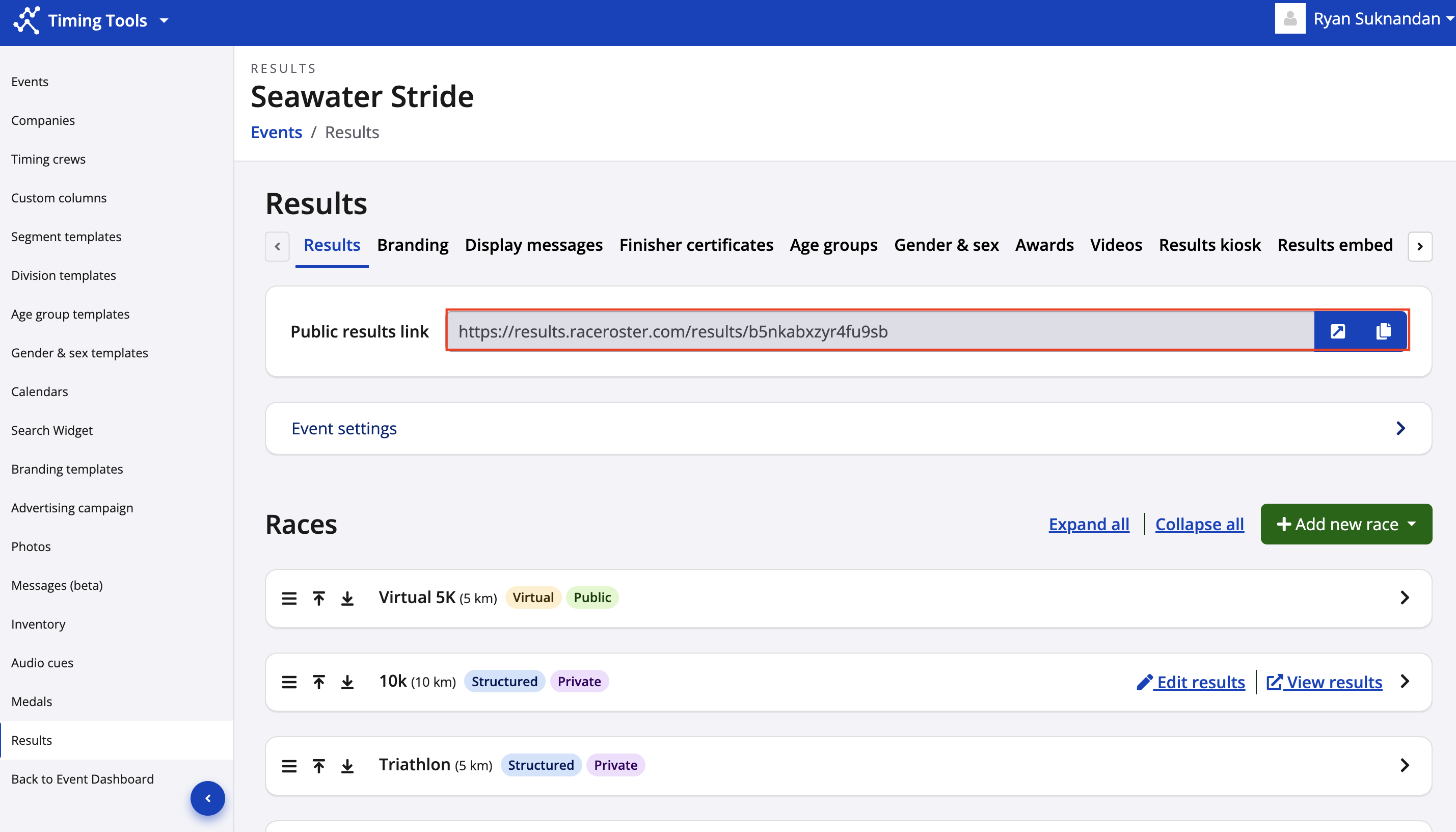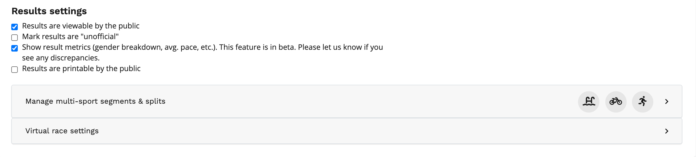 4. After you have switched your race to virtual or created a new race, be sure to mark that your results are viewable by the public.
