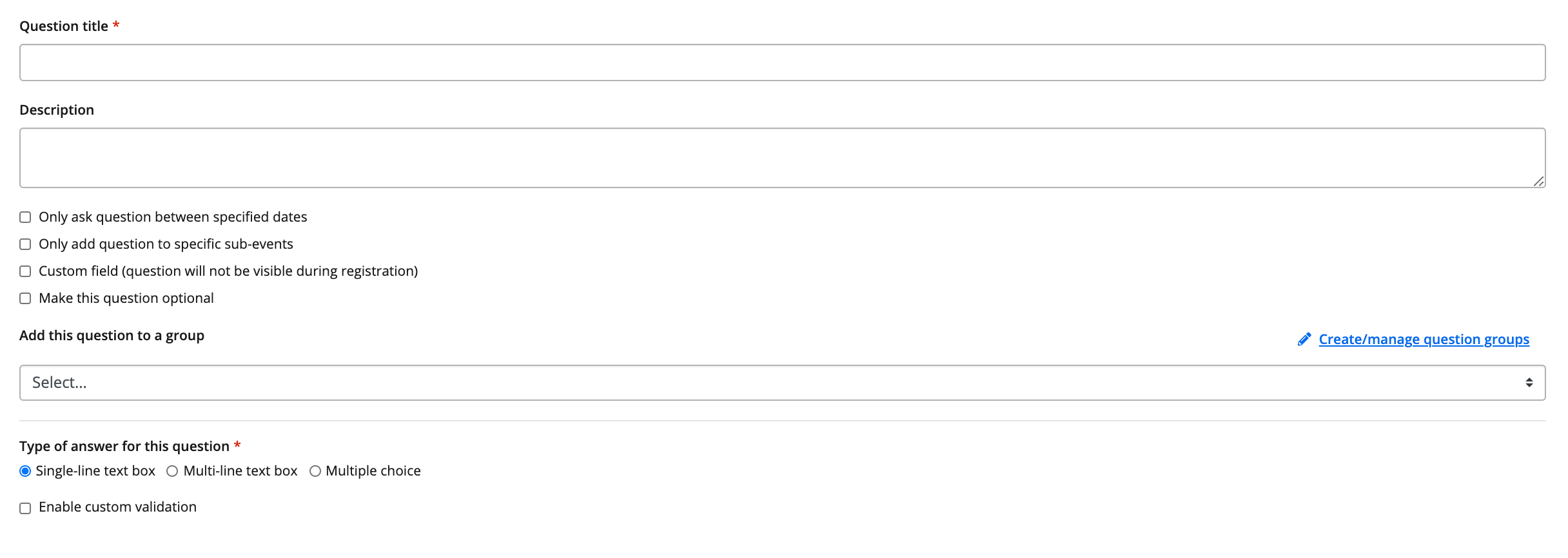 5. Check-off the box titled Custom field (question will not be visible during registration).