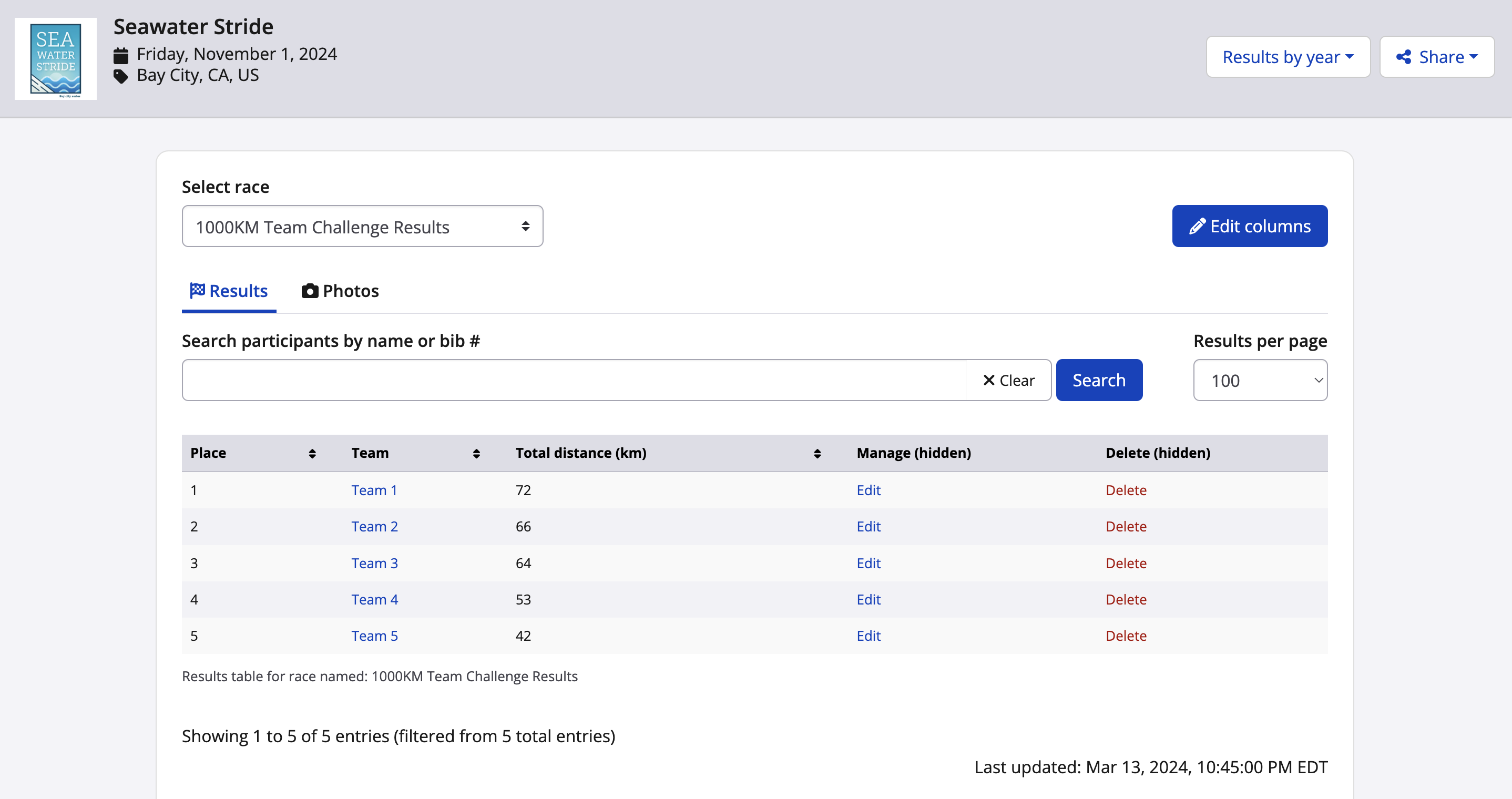 Add or remove any additional columns to customize and simplify the display (ex: Adding "overall place" columns, etc.).