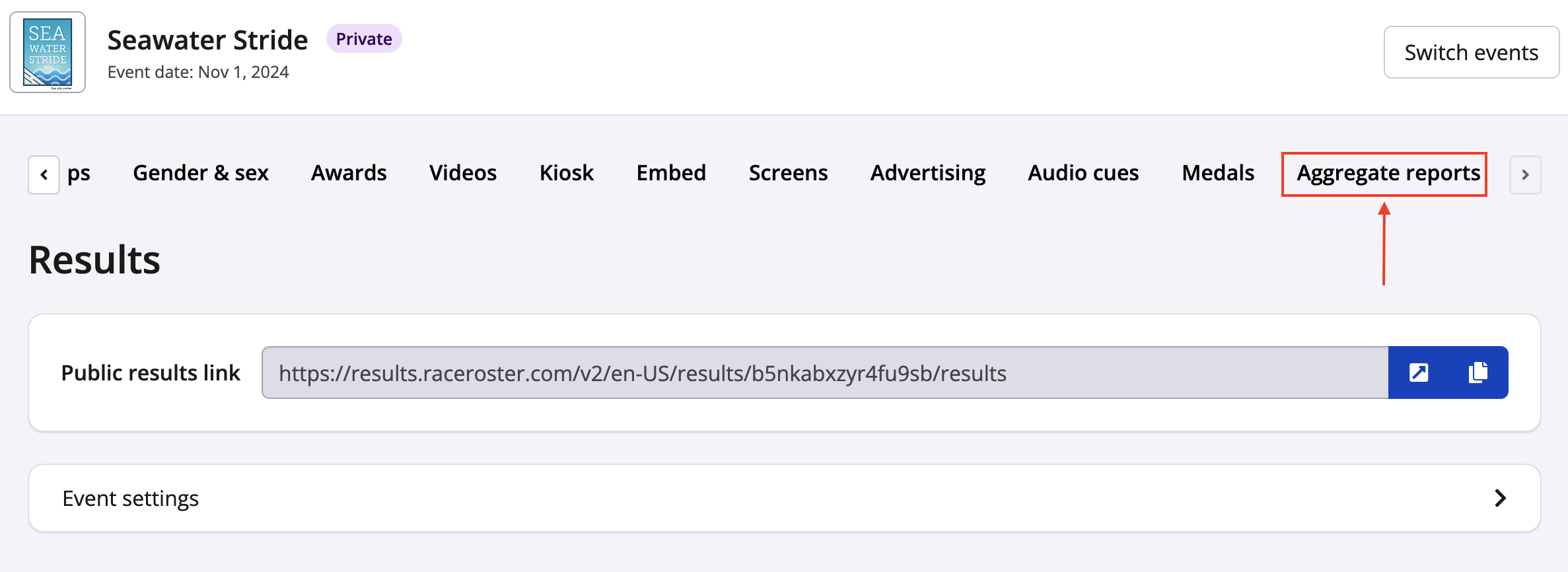 2. From your results dashboard, click on the arrow button on the righthand side of the page to navigate to the Aggregate reports section.