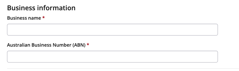 - Fill in the appropriate business information to appear on the transaction receipts. Business name and ABN are mandatory fields.