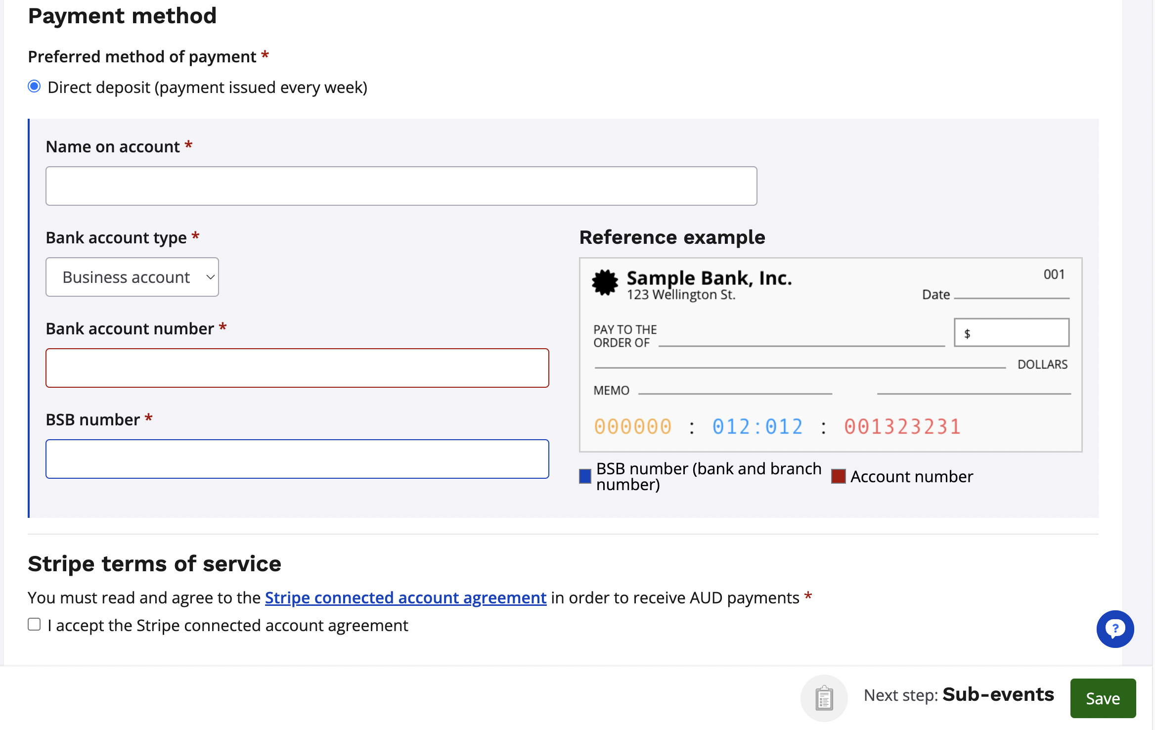 This process can sometimes take a few days - so we suggest you commence this process as soon as your event is set up! The good news is, once you have had your bank details verified, your payment profile will be saved for any future events!