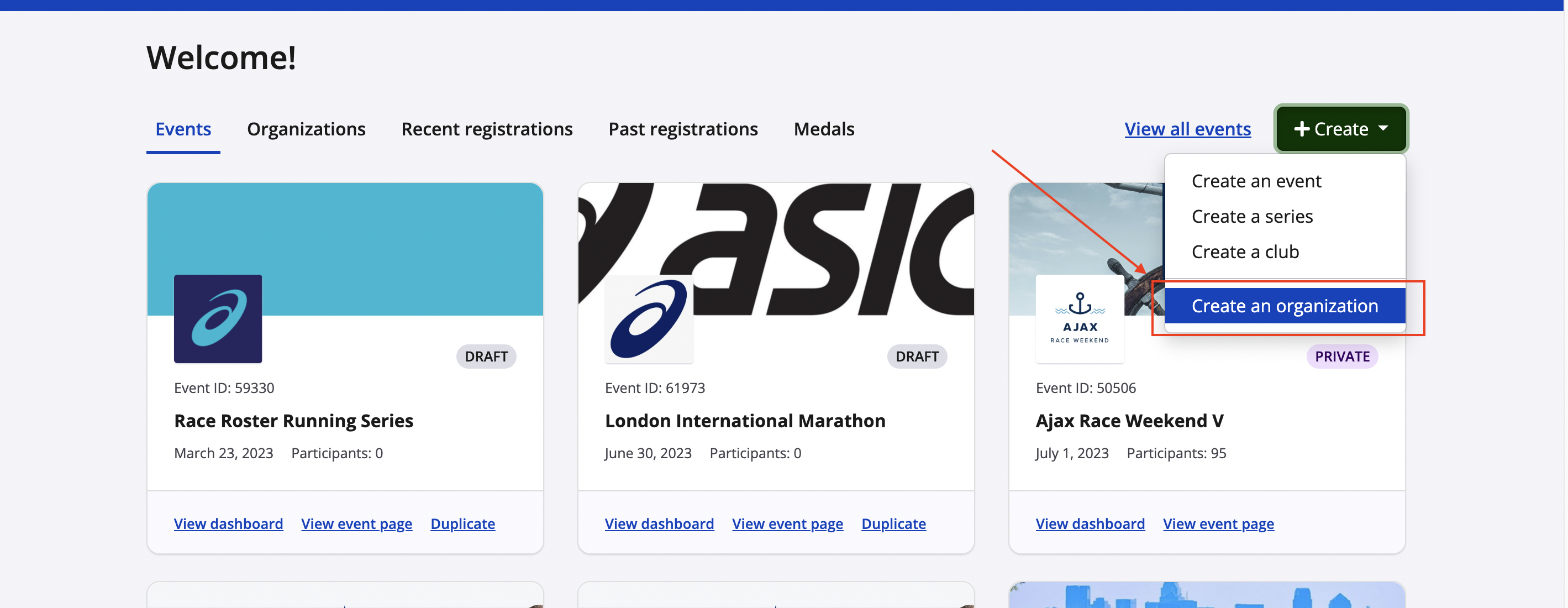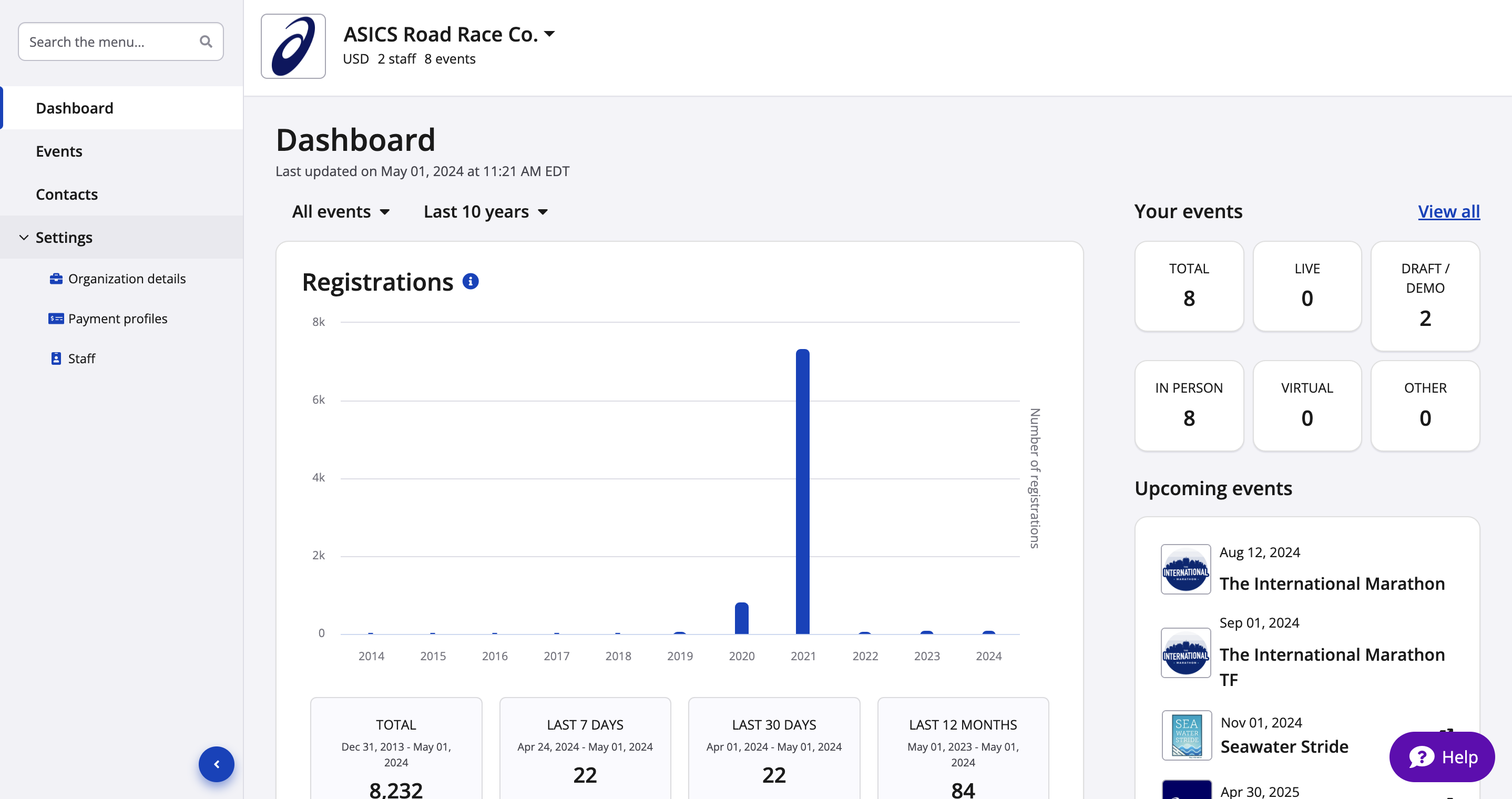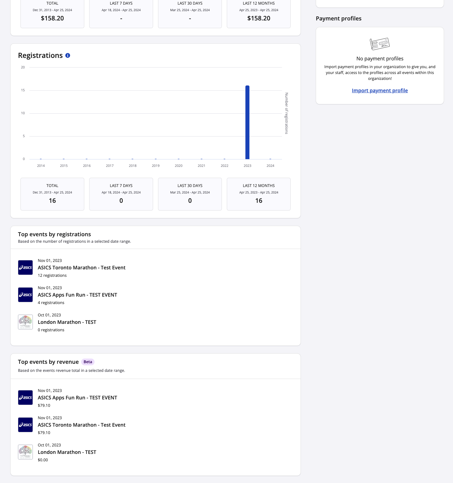 You will also be able to keep track of registration totals across all of the events included within your organization.
