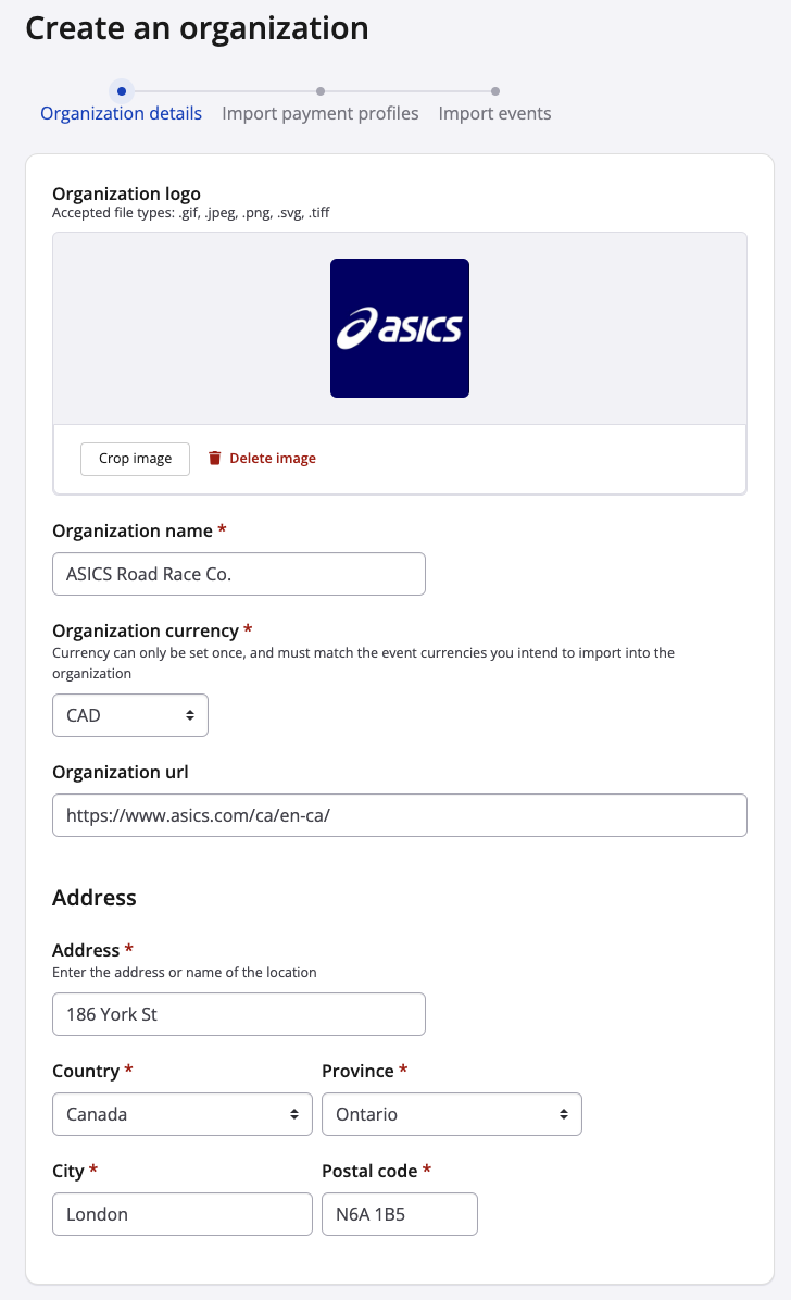 - Note: Only events sharing the same currency can be imported to your organization; if you manage events in different currencies, you will need multiple organizations.