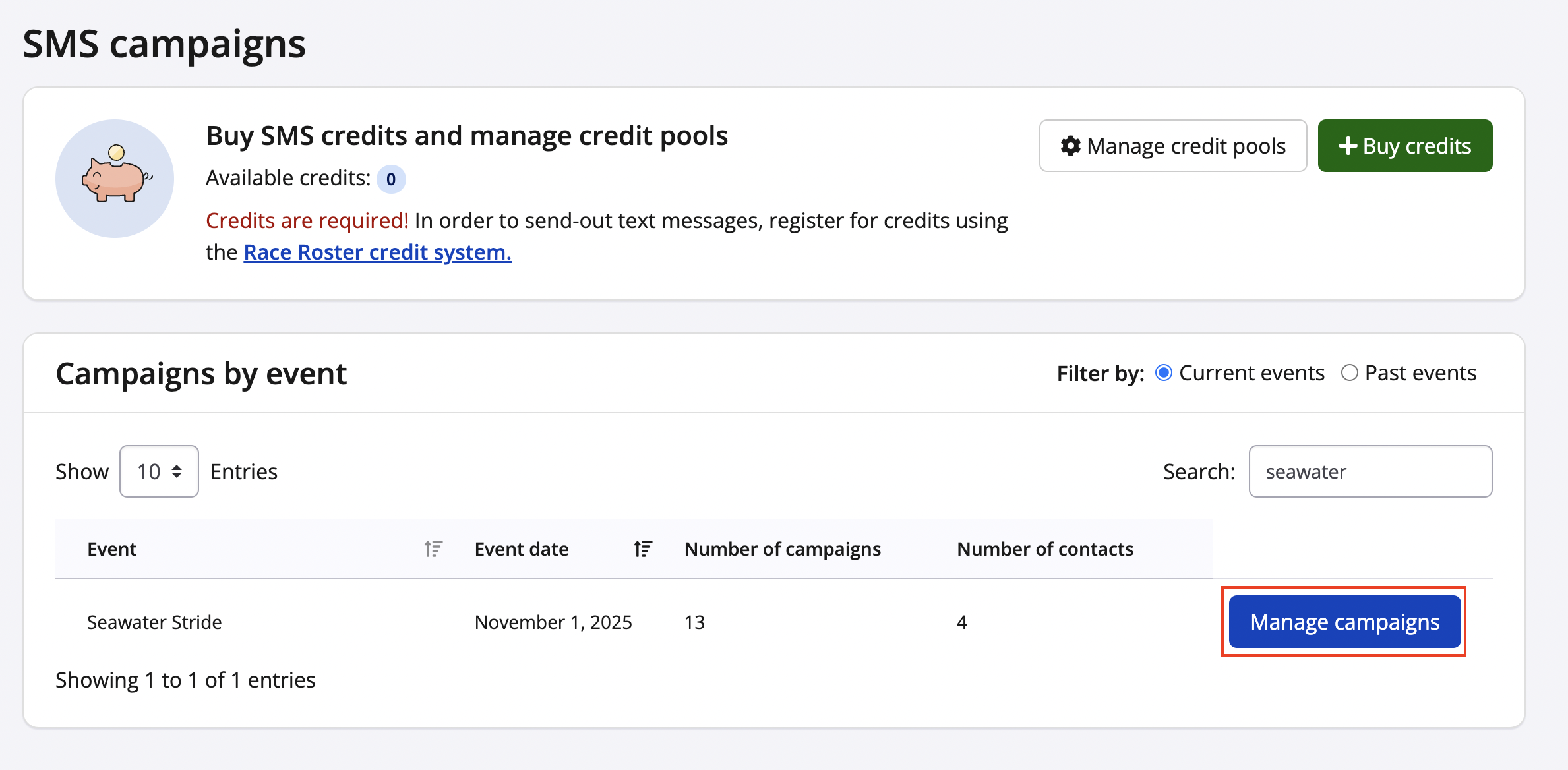 2. Click the Manage Campaigns button associated with the event you're working on.