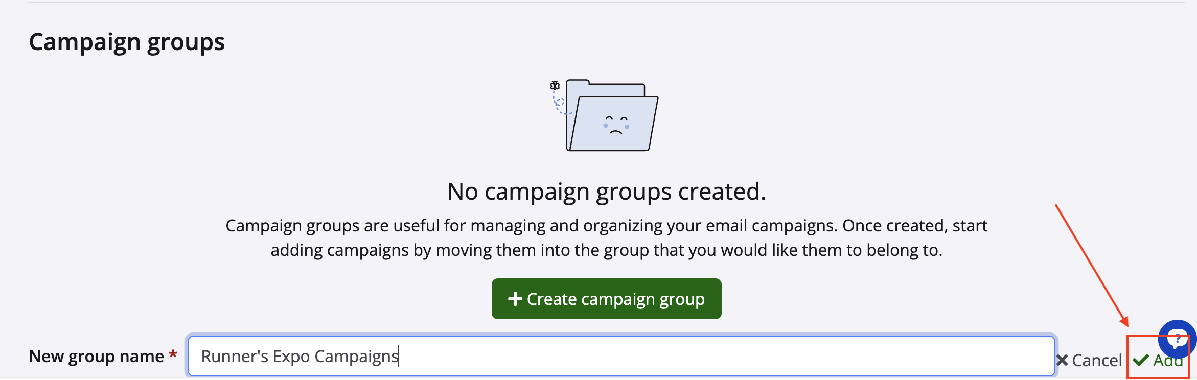 3. Give your new campaign group a title and then click the green "add" button from the righthand side of the page to create the group