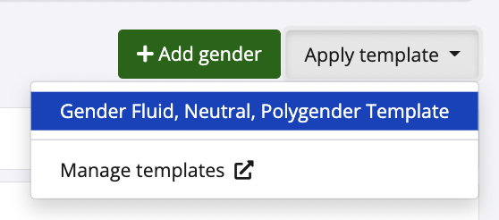 5. Your newly created template will now be saved within your gender & sex templates, and can also be selected from your list of templates when creating any custom genders on any other event page.