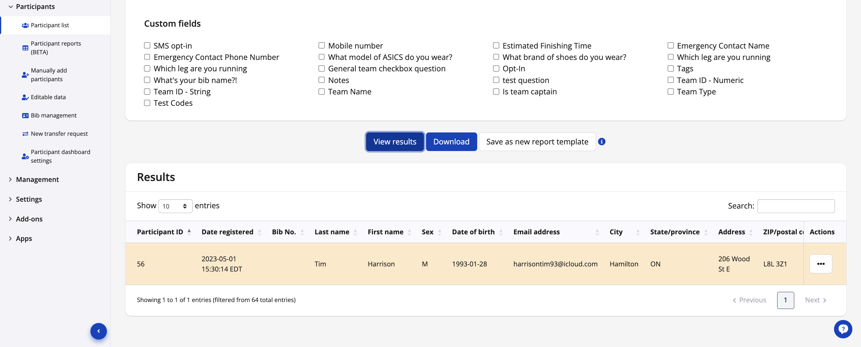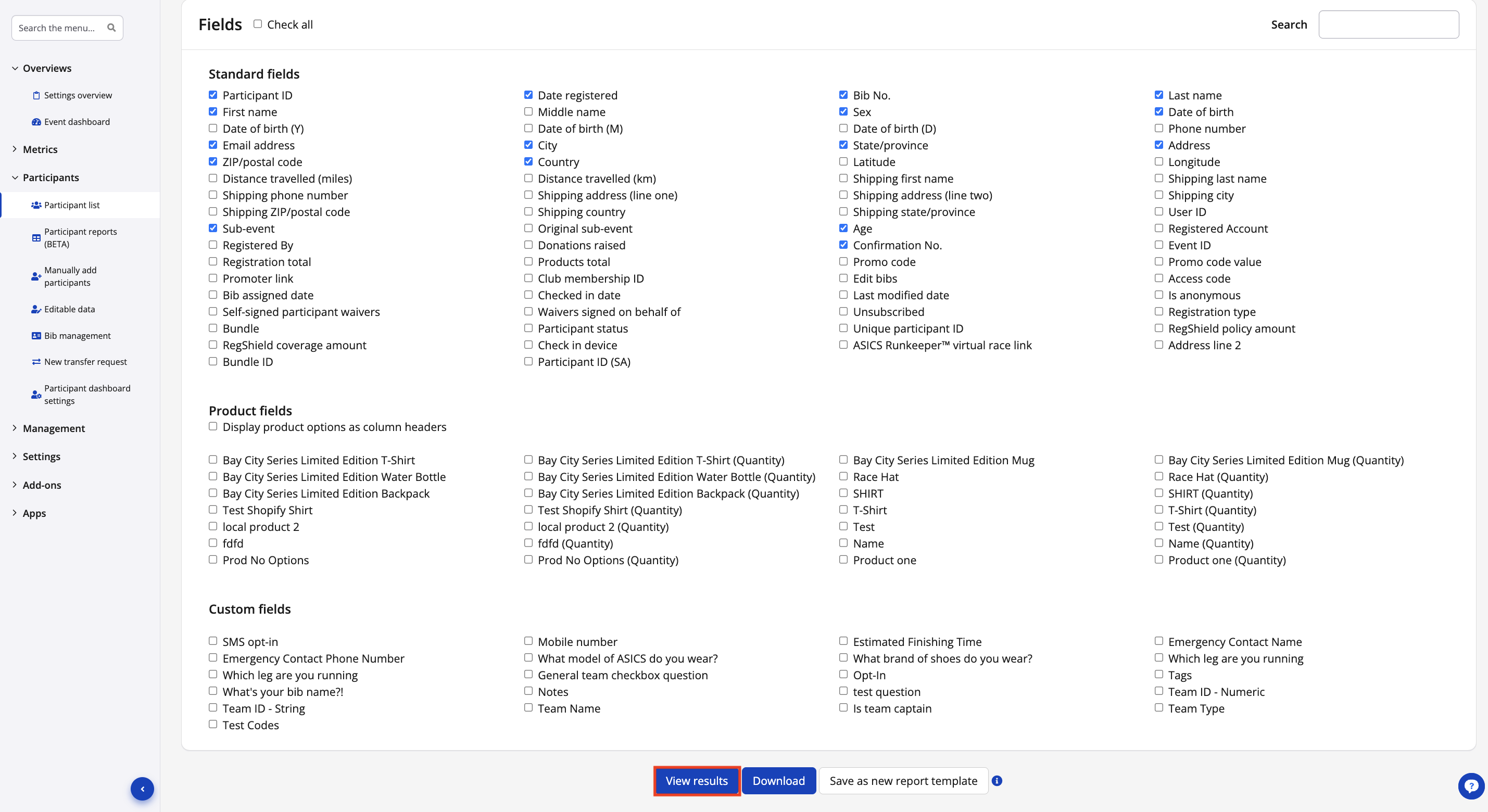 3. Scroll to the bottom of the page and click the blue View Results button to generate your Participant List.