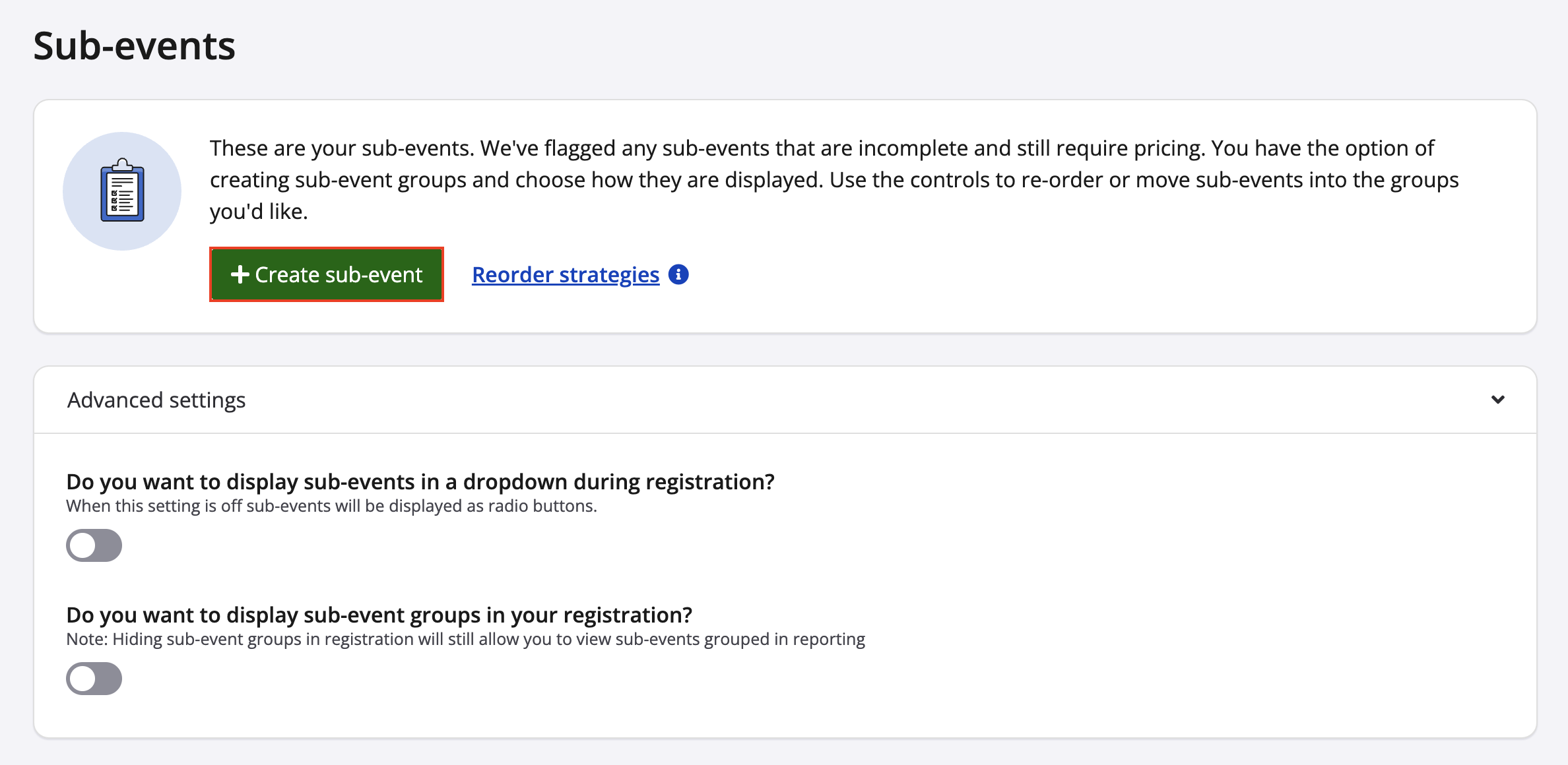 5. Click on the green Create sub-event button to begin creating your USAT-specific sub-events.