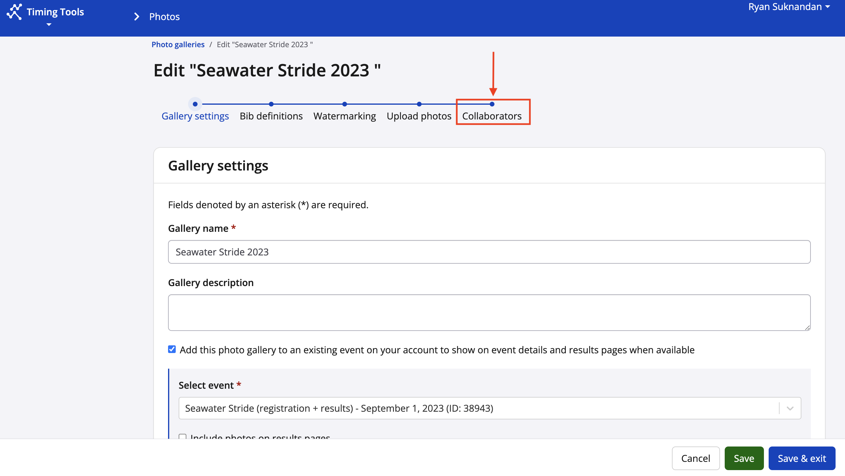3. Within your gallery settings, click on the collaborators step at the top of the page.