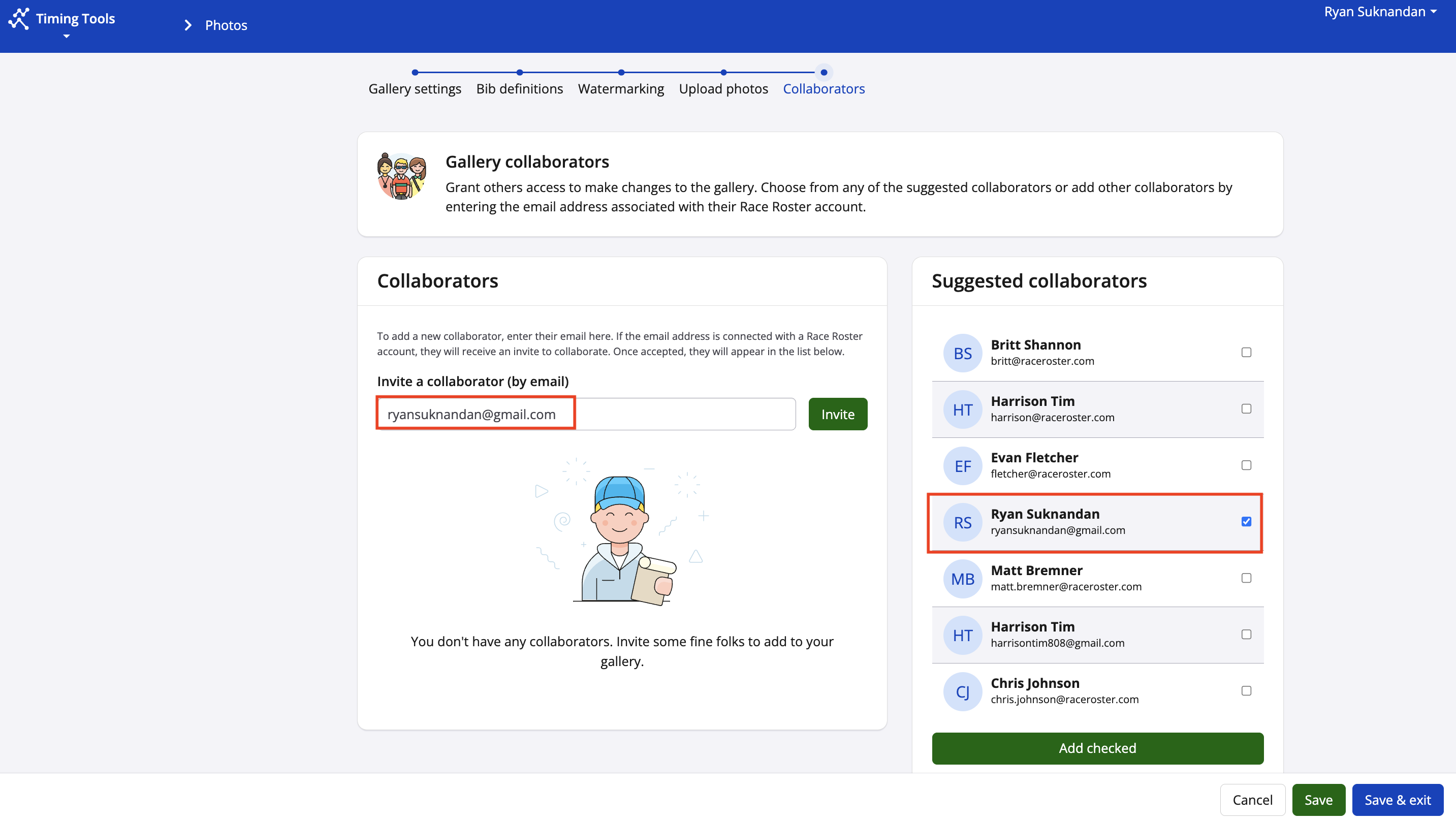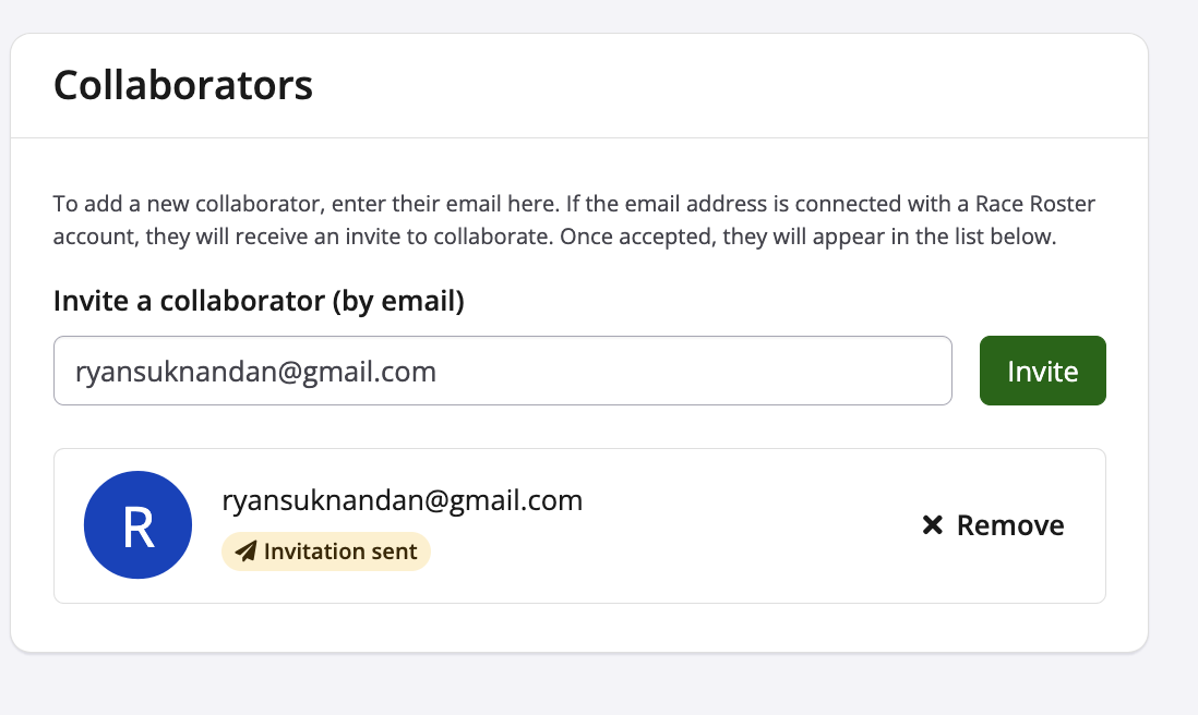 If you have any questions about adding collaborators to your photo gallery, please contact us at director@raceroster.com