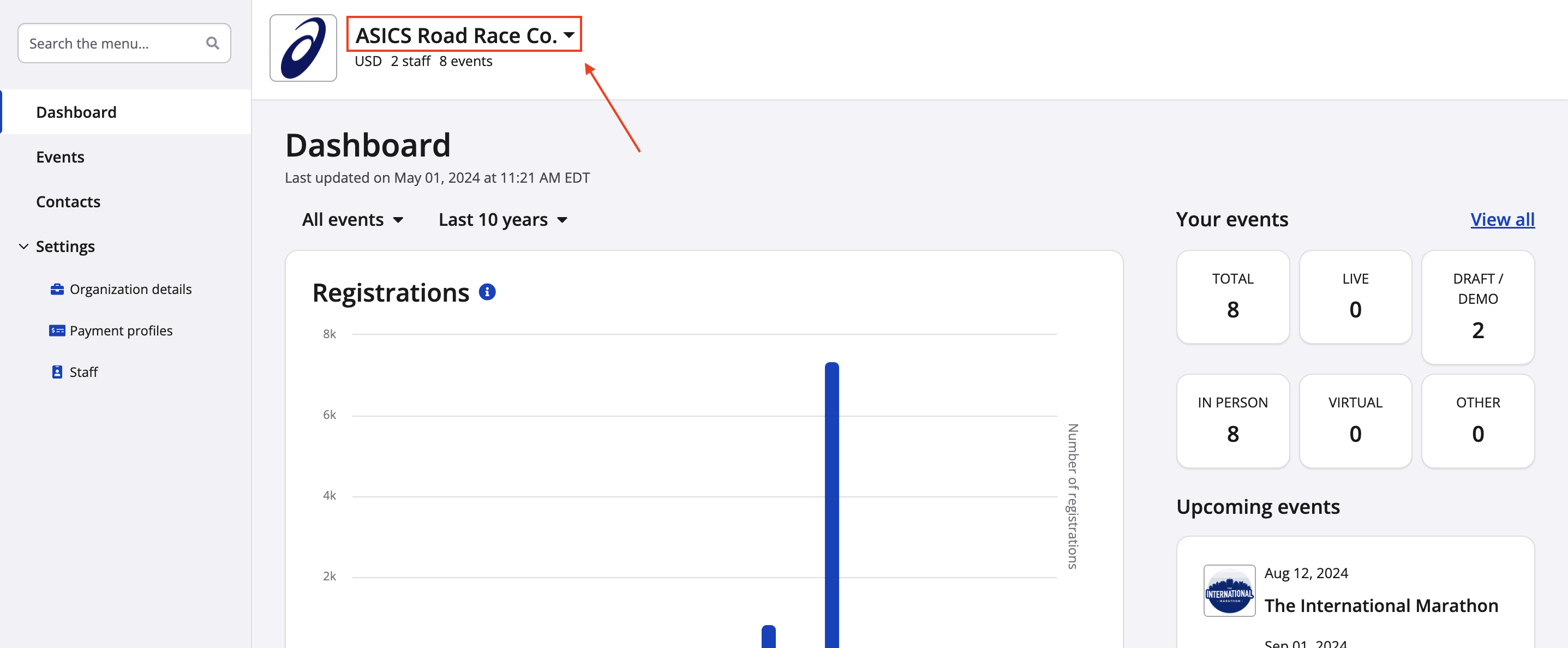 Click on the organization from the dropdown that you'd like to view.