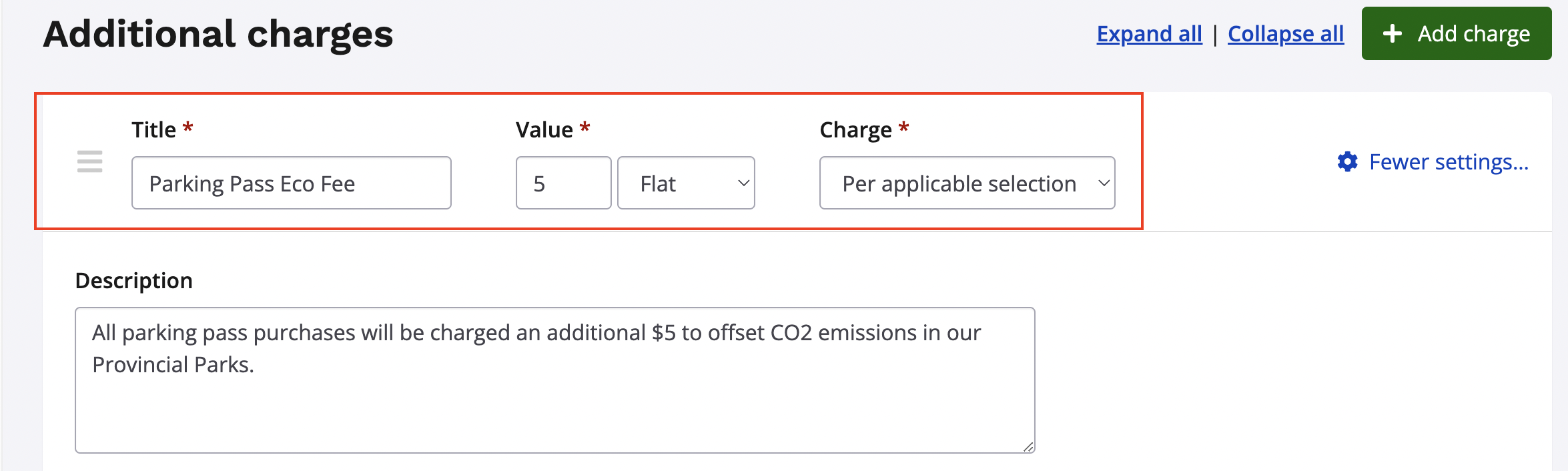 - Title of your additional charge (will be visible to the participant on the checkout screen)