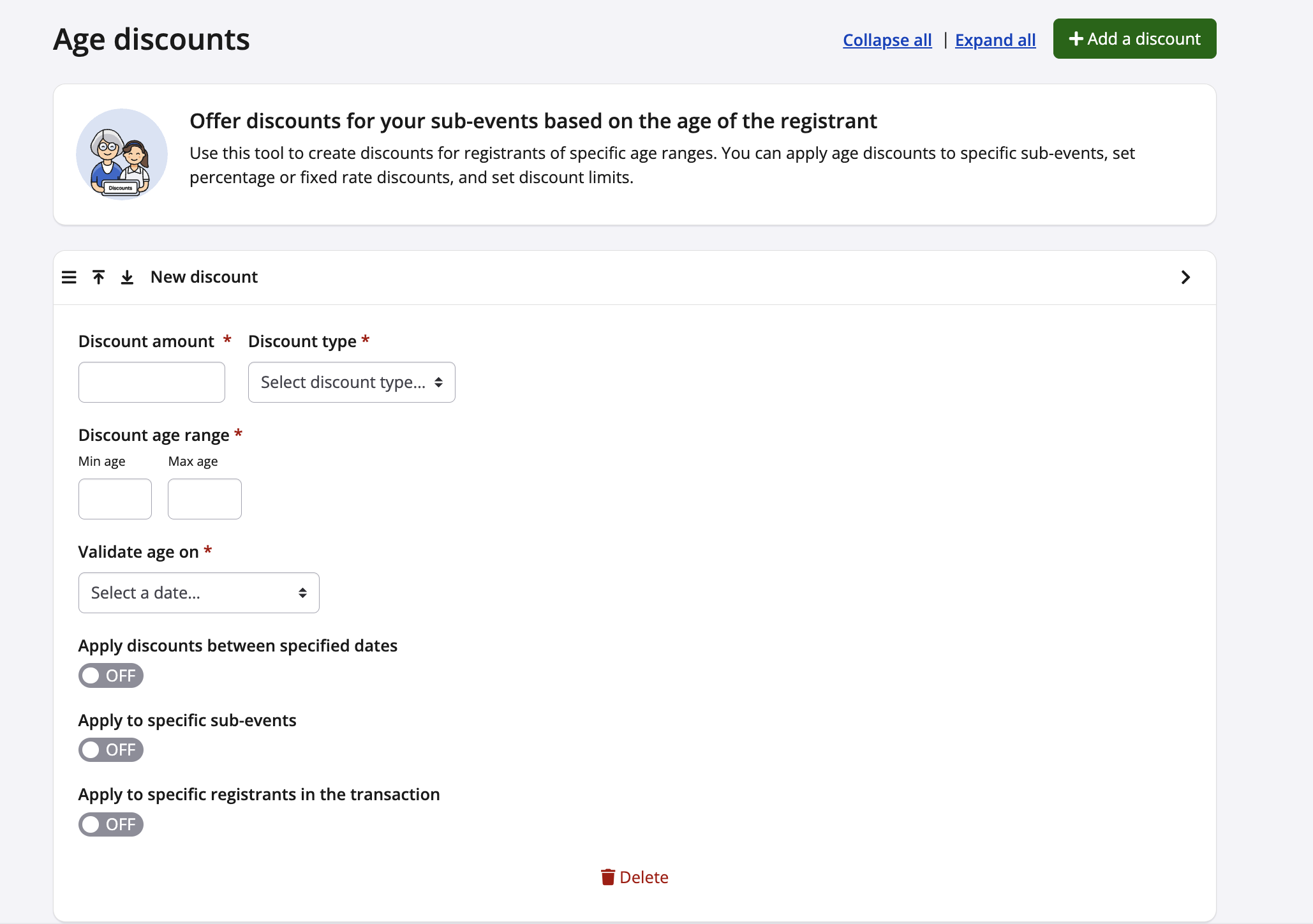 How to set up an age discount for my event