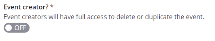 - Keep the event creator toggle disabled