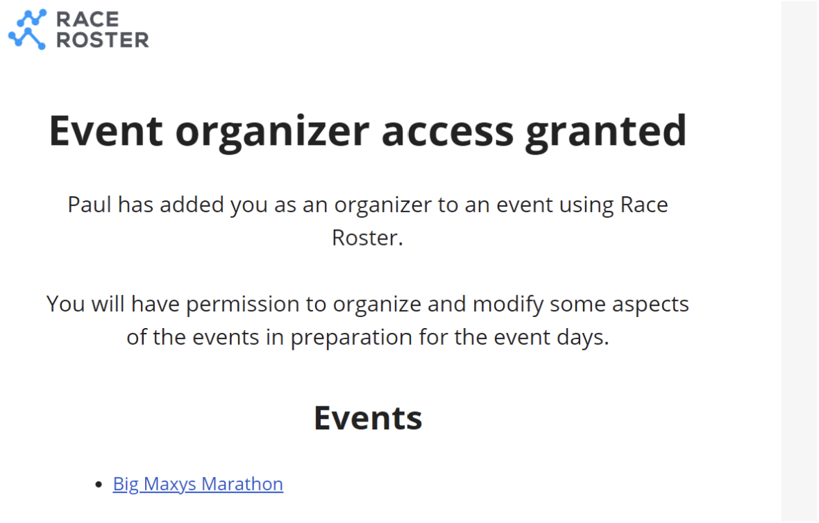 - Either add them automatically if they have an existing Race Roster account under their email address, or, send them an email to claim their access