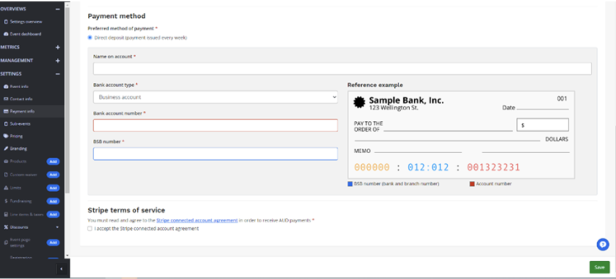 Note: You can use this payment profile on other events, so you only need to set it up once.